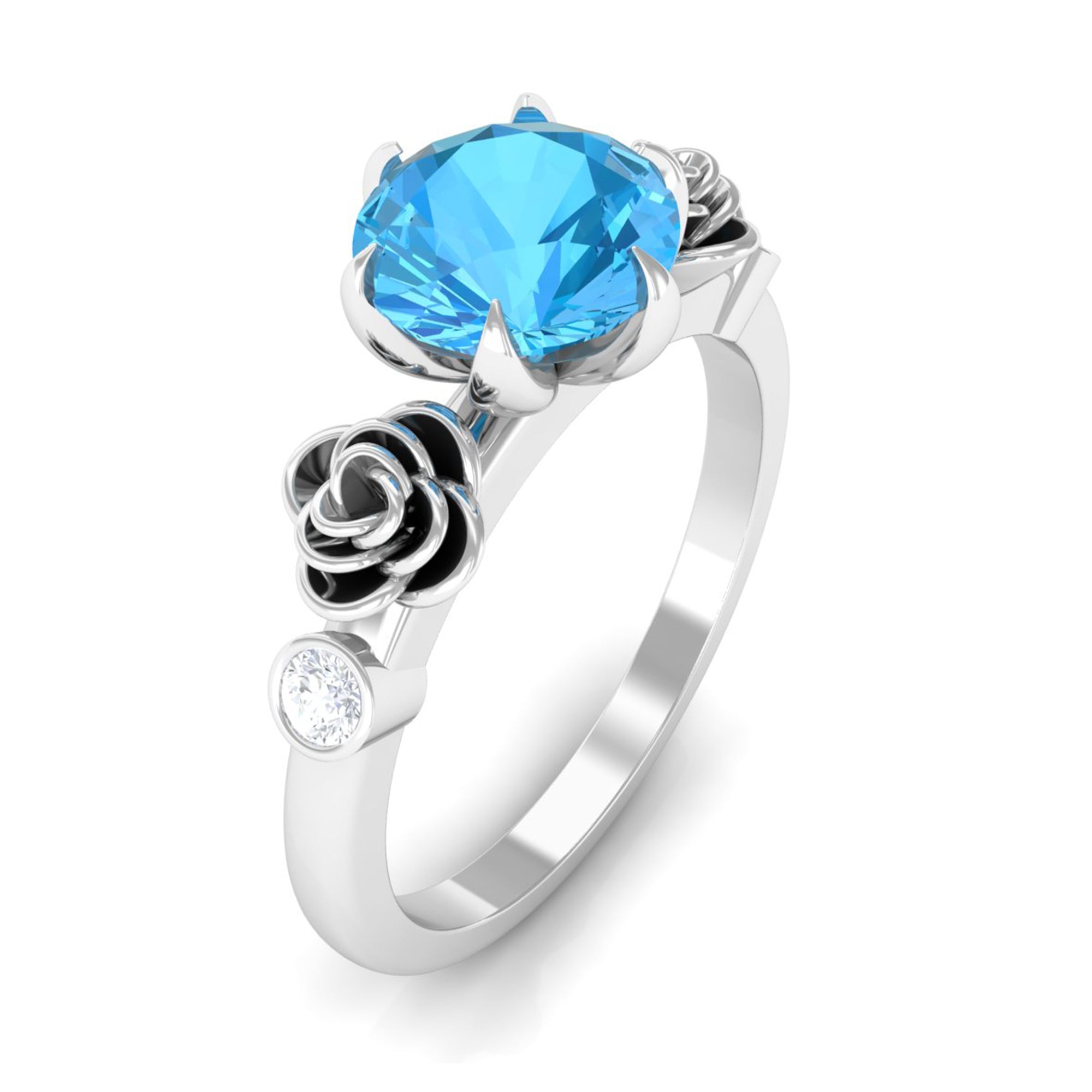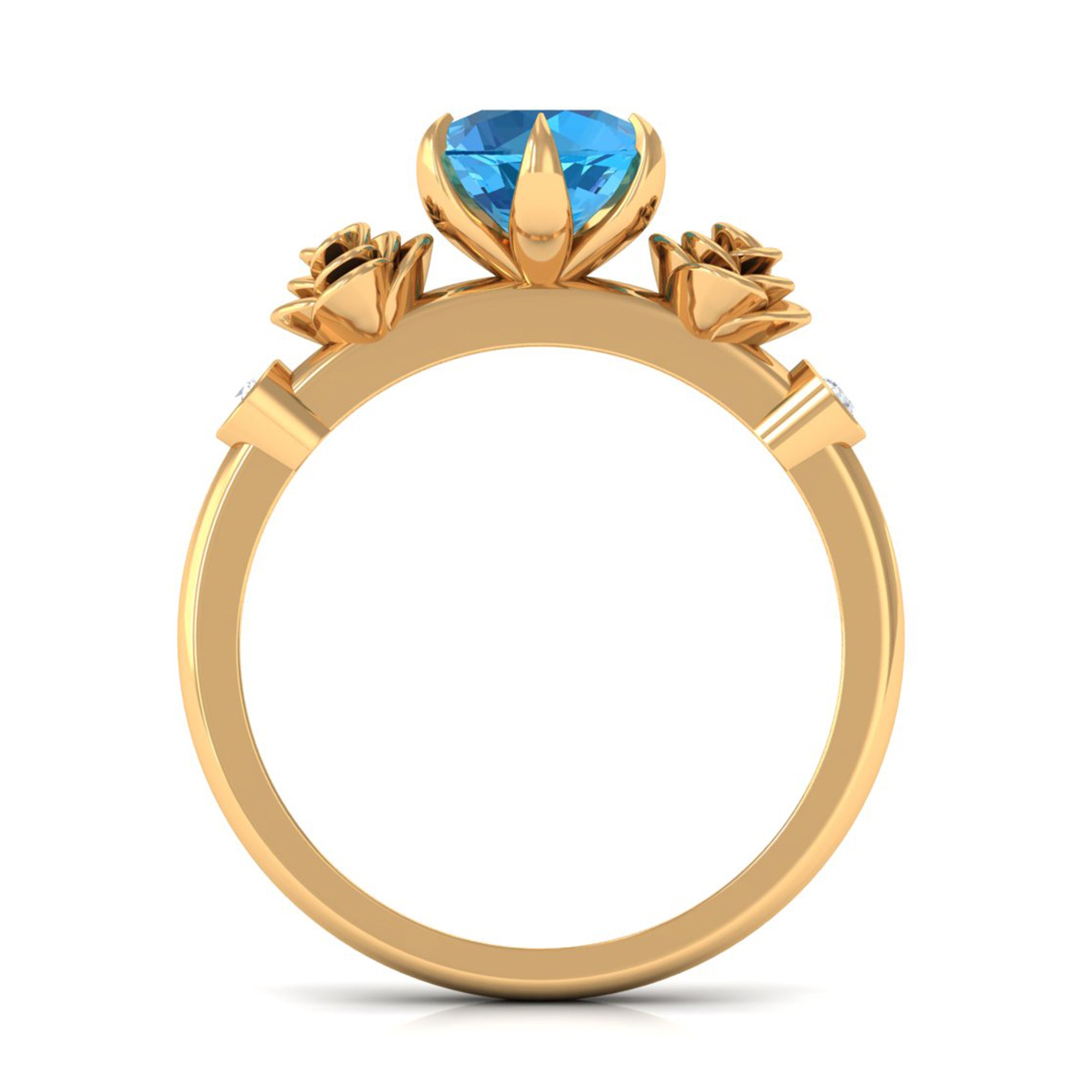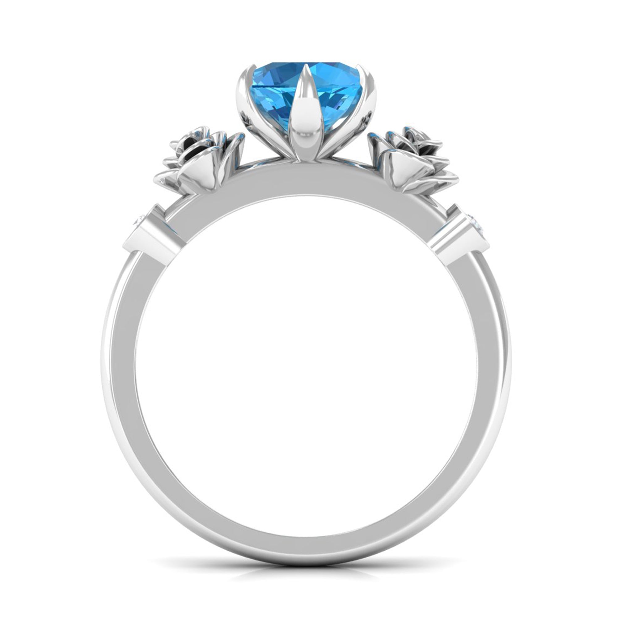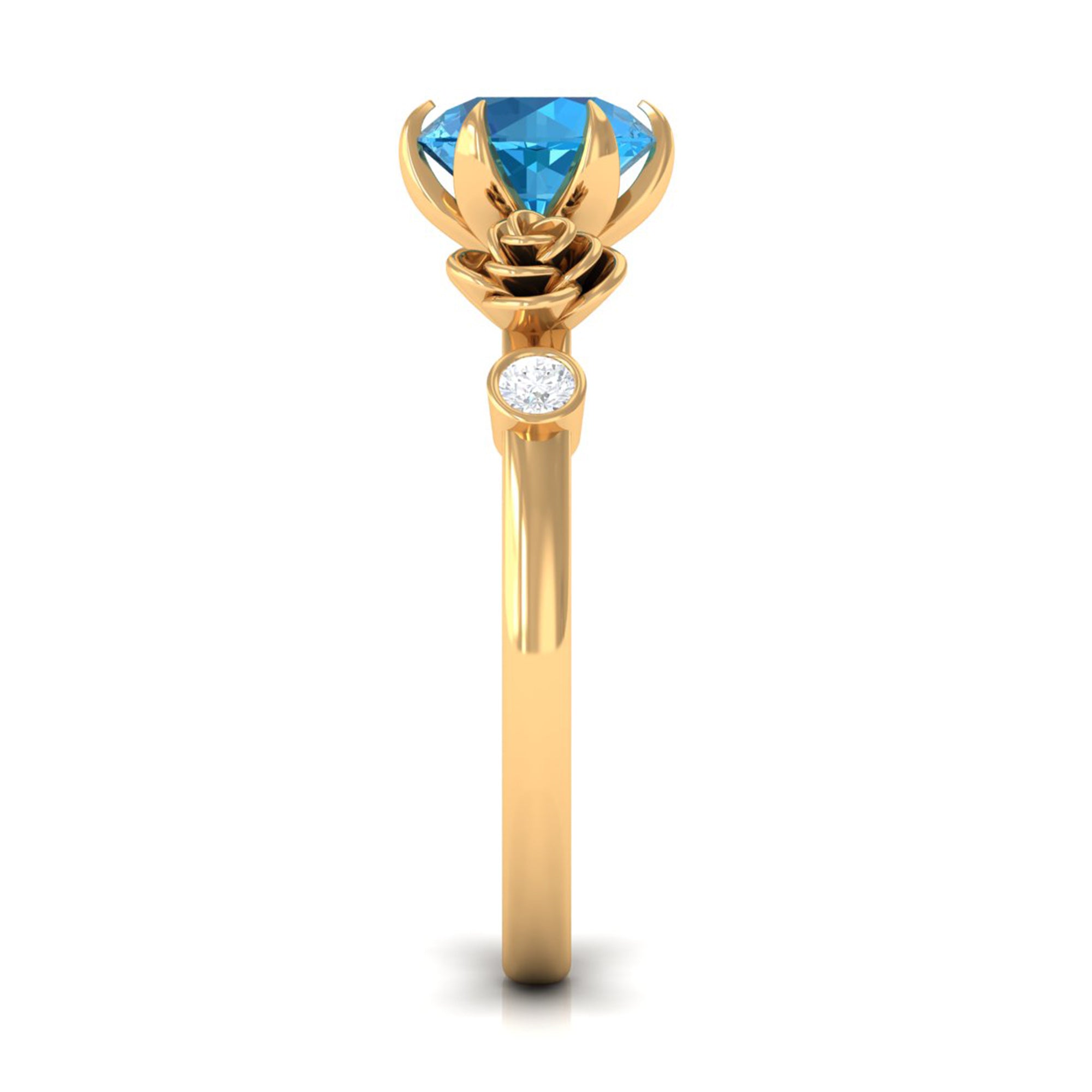 Solitaire Swiss Blue Topaz Flower Ring with Diamond