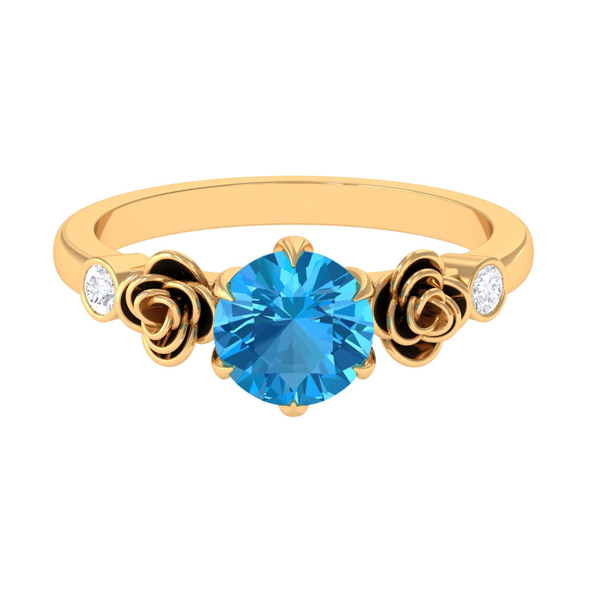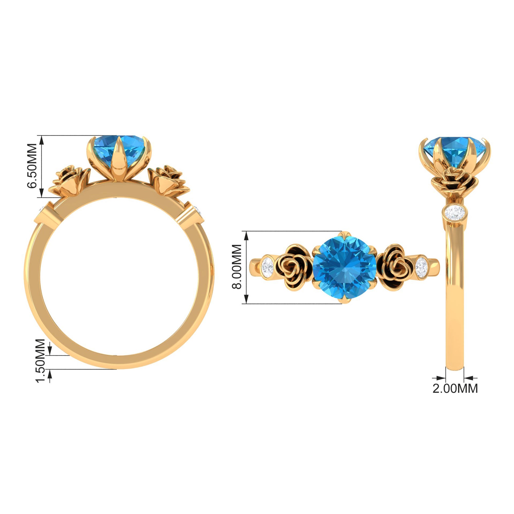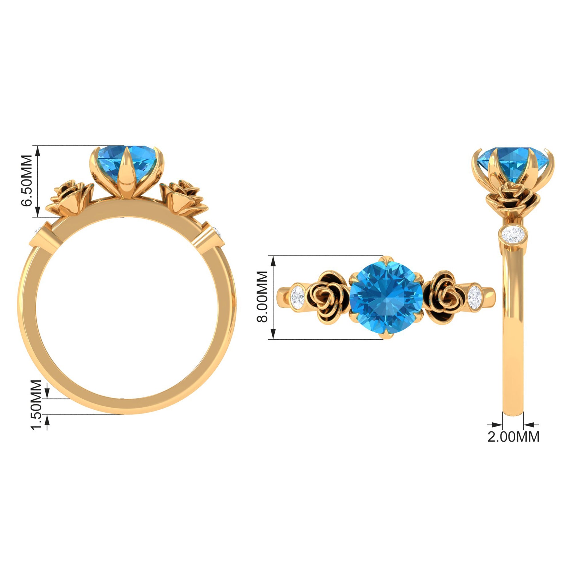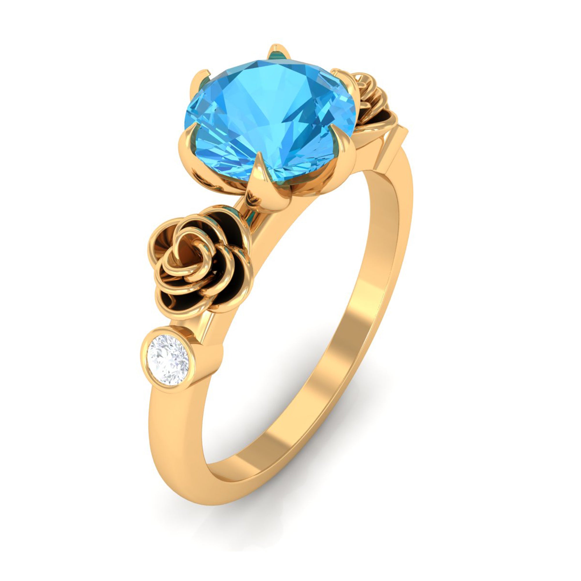 Solitaire Swiss Blue Topaz Flower Ring with Diamond