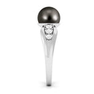 Solitaire Tahitian Pearl Engagement Ring with Diamond Side Stones