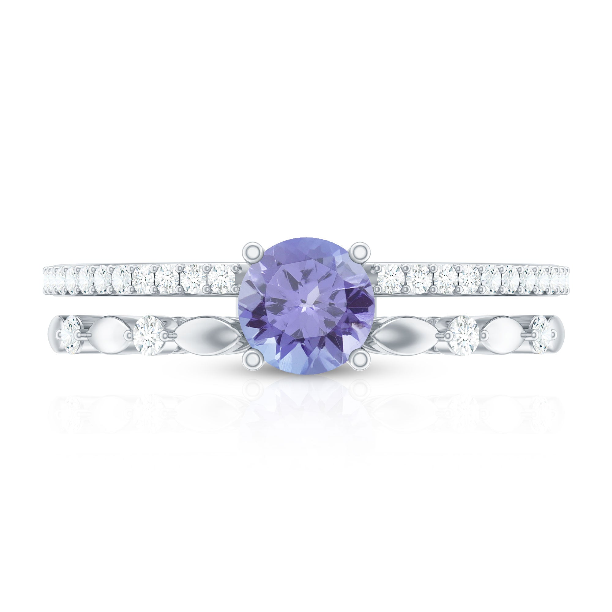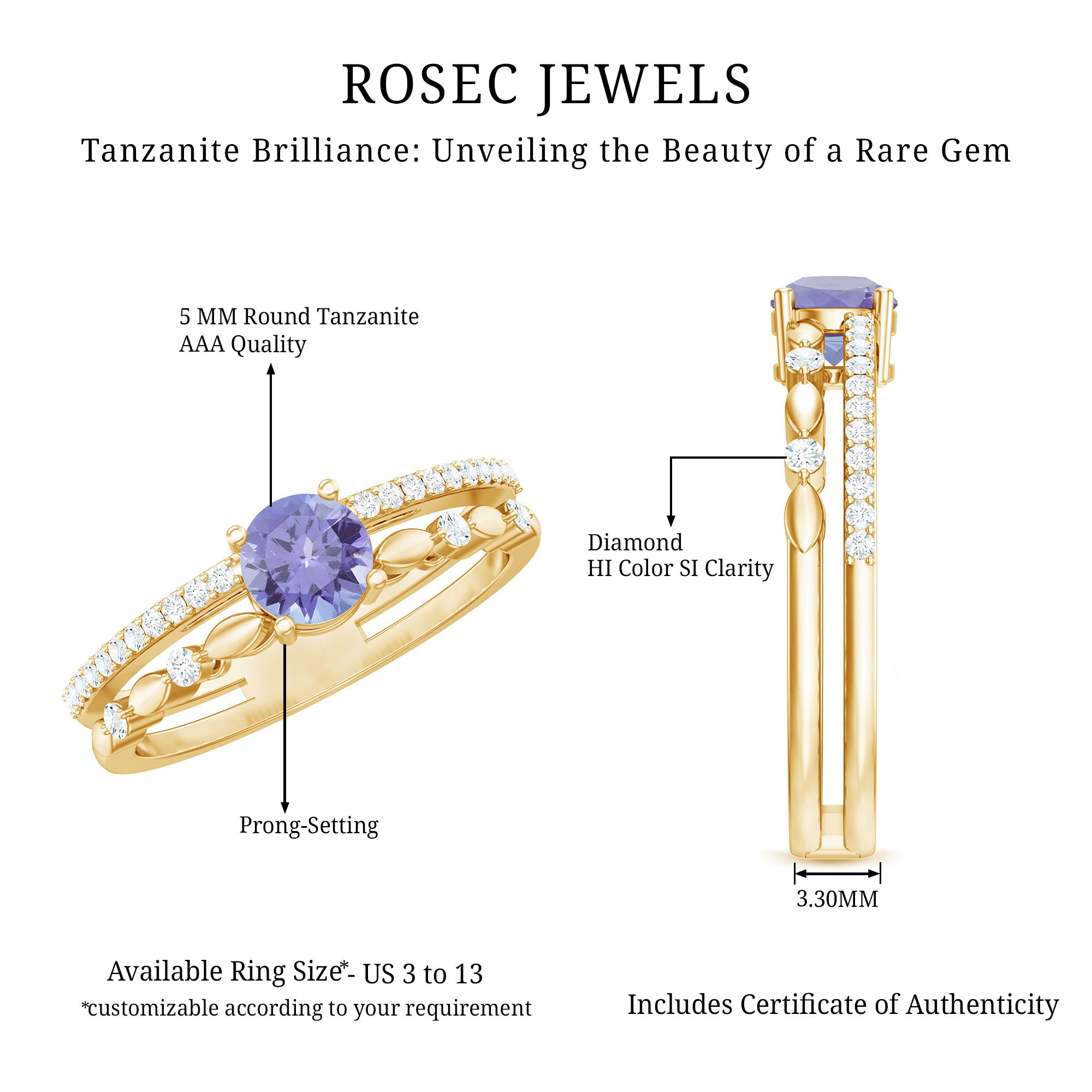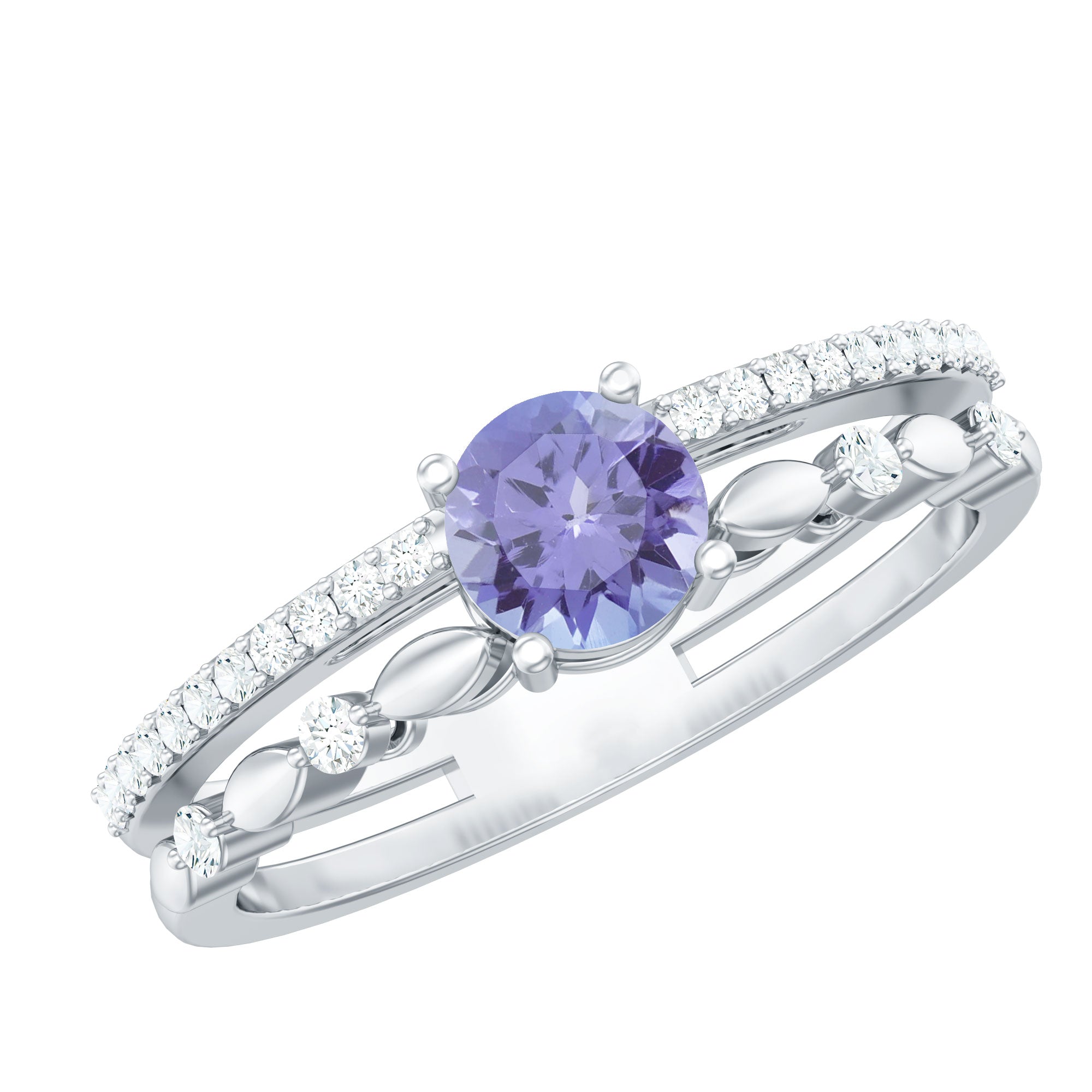 Make her feel special with this breathtaking Tanzanite Engagement Ring. The Solitaire ring features a dazzling round Tanzanite solitaire on a double band shank delicately decorated with sparkling Diamond. This stunning double band ring is the perfect symbol of your love and commitment, sure to take your partners breath away. Celebrate your future together with this beautiful and meaningful piece of jewelry.