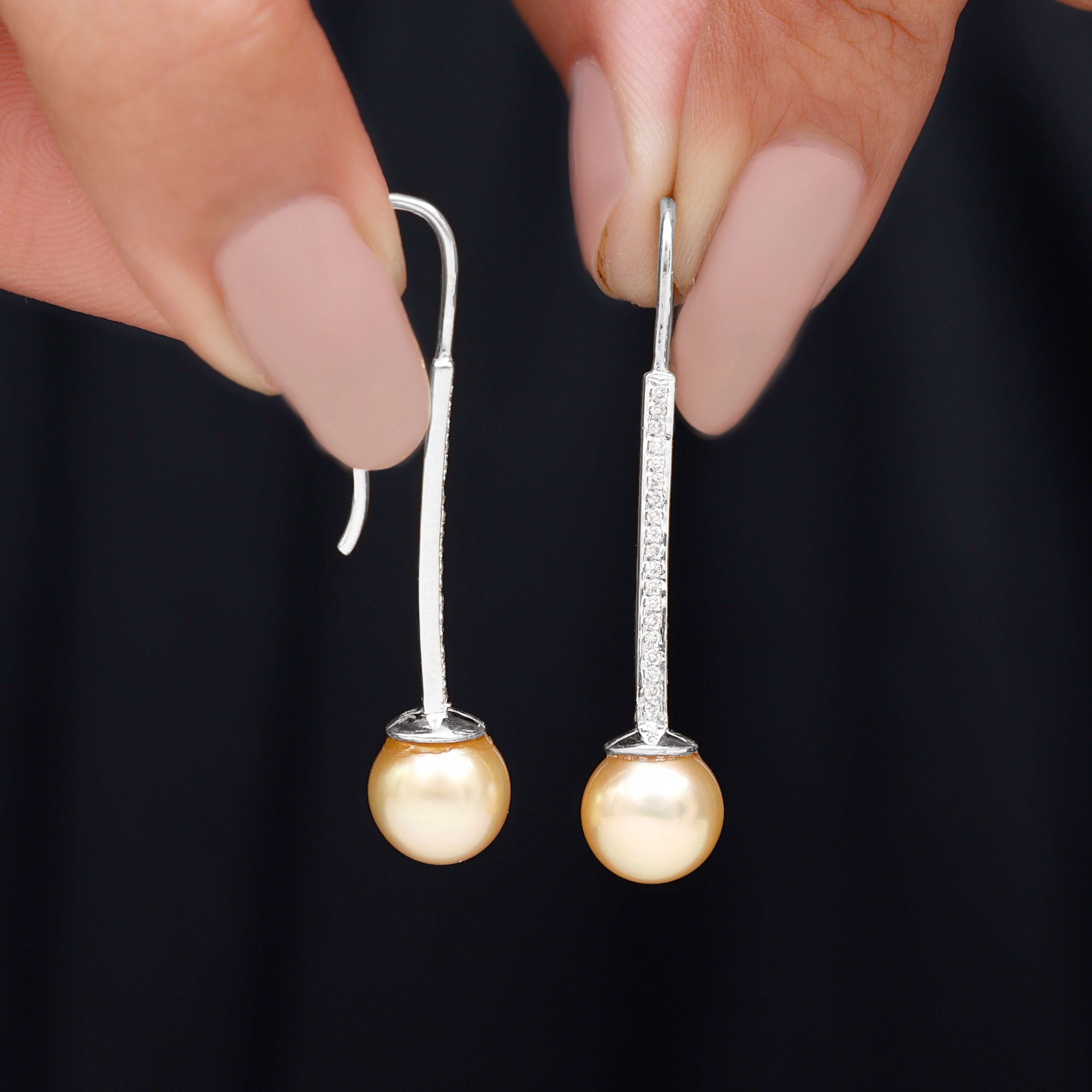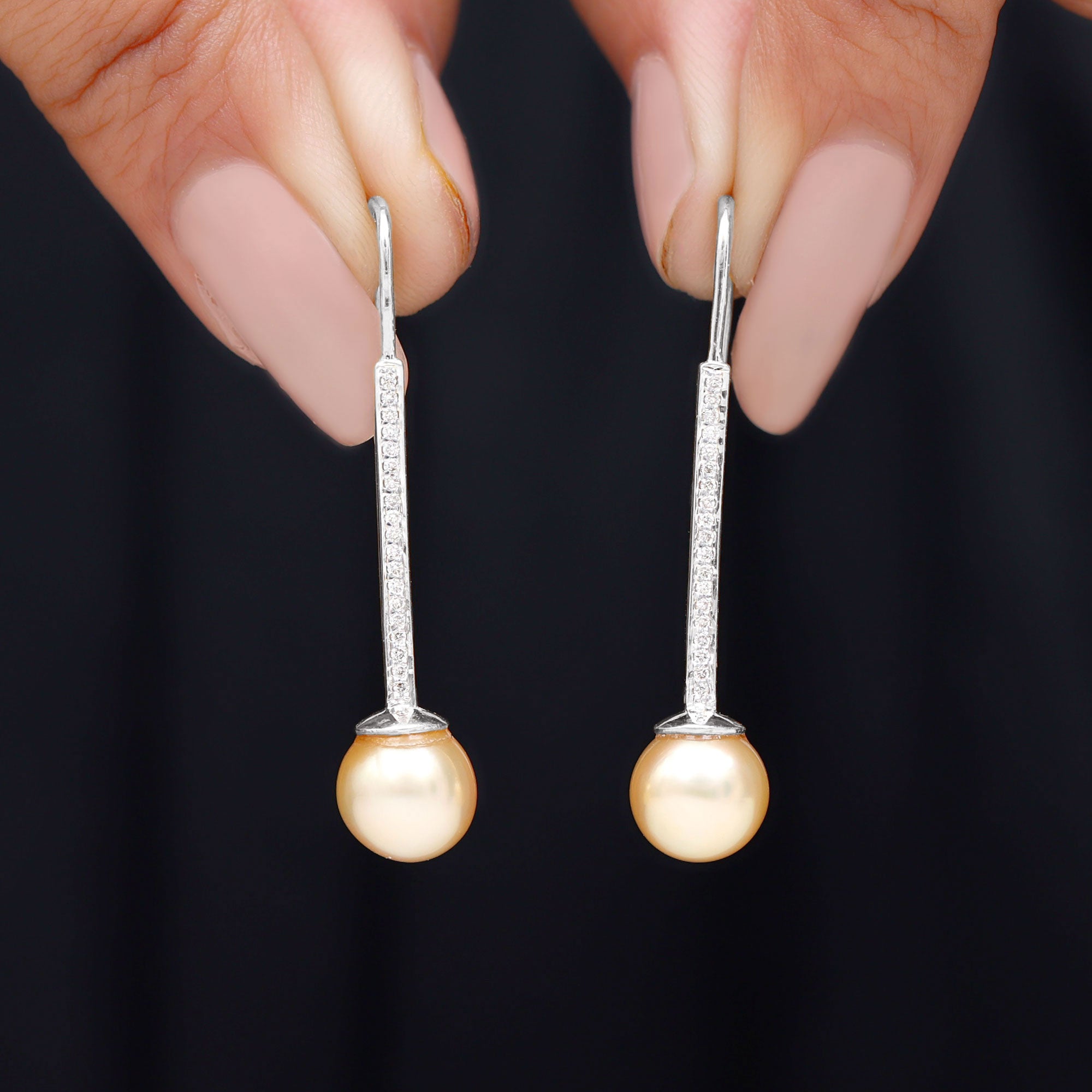 South Sea Pearl and Diamond Drop Earring with Fish Hook Closure