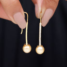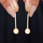Bar Drop Earring is designed in bar shape studded with Round Shape Diamonds in Prong Setting and gigantic South Sea Pearl is set as drop. Solid Gold is used to craft this Unique Earring makes you look gorgeous.