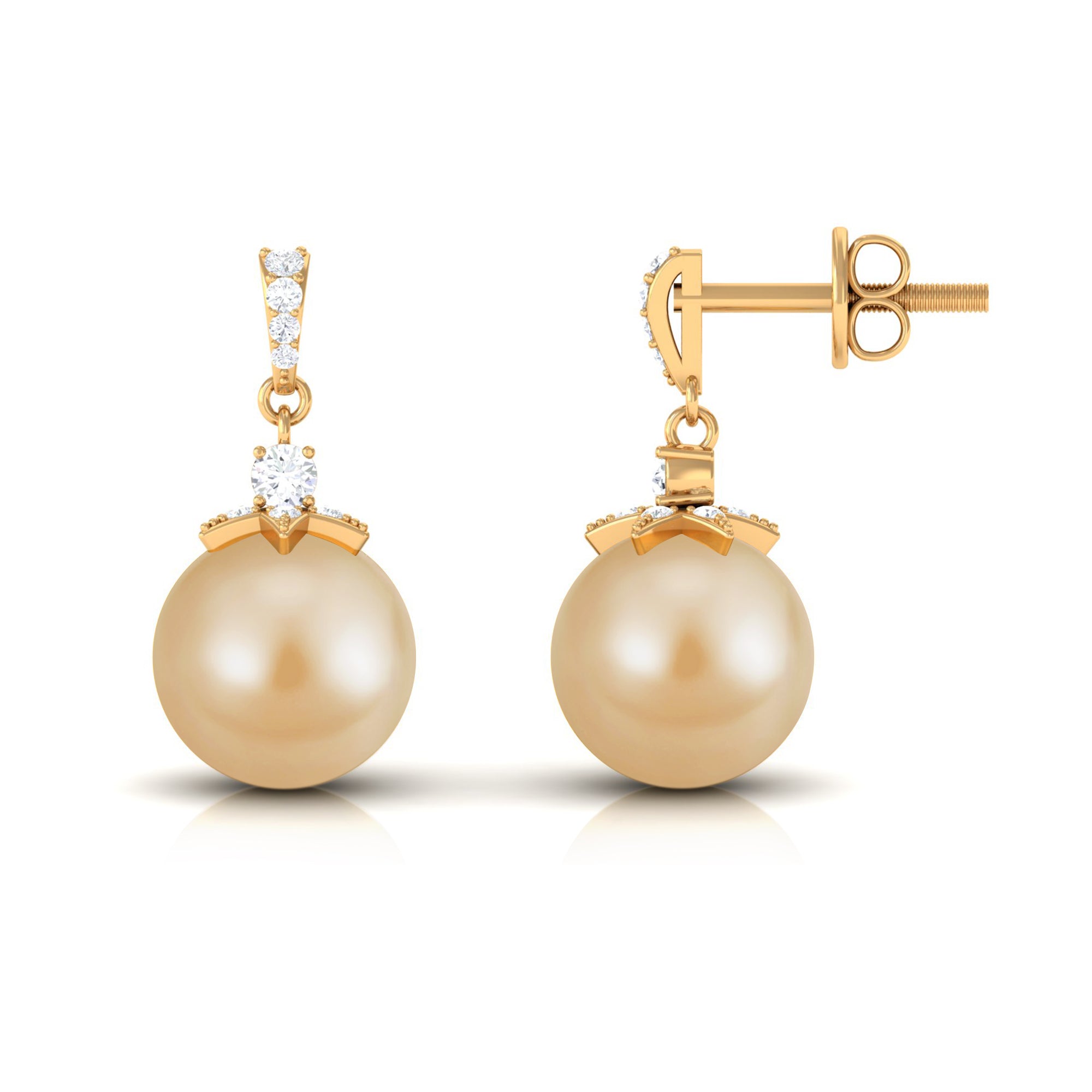 South Sea Pearl Minimal Drop Earrings with Diamond Stones