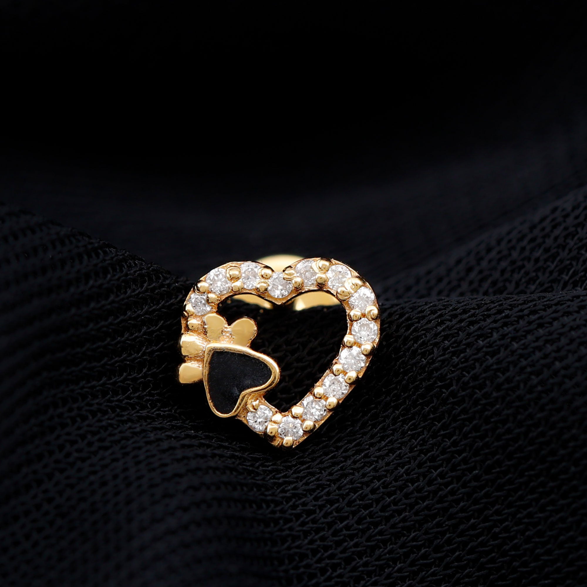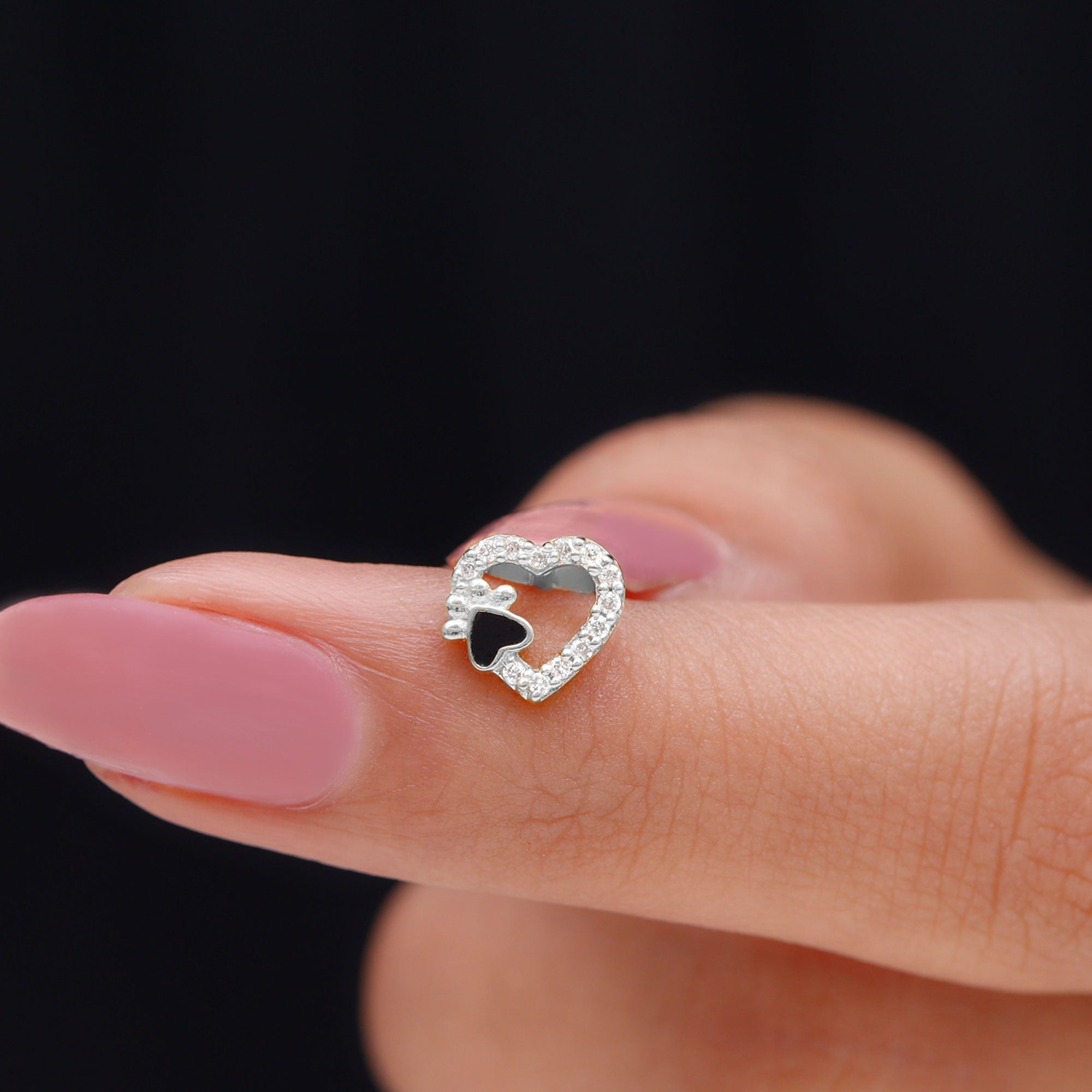 Sparkling Diamond Dog Paw Heart Earring with Black Enamel