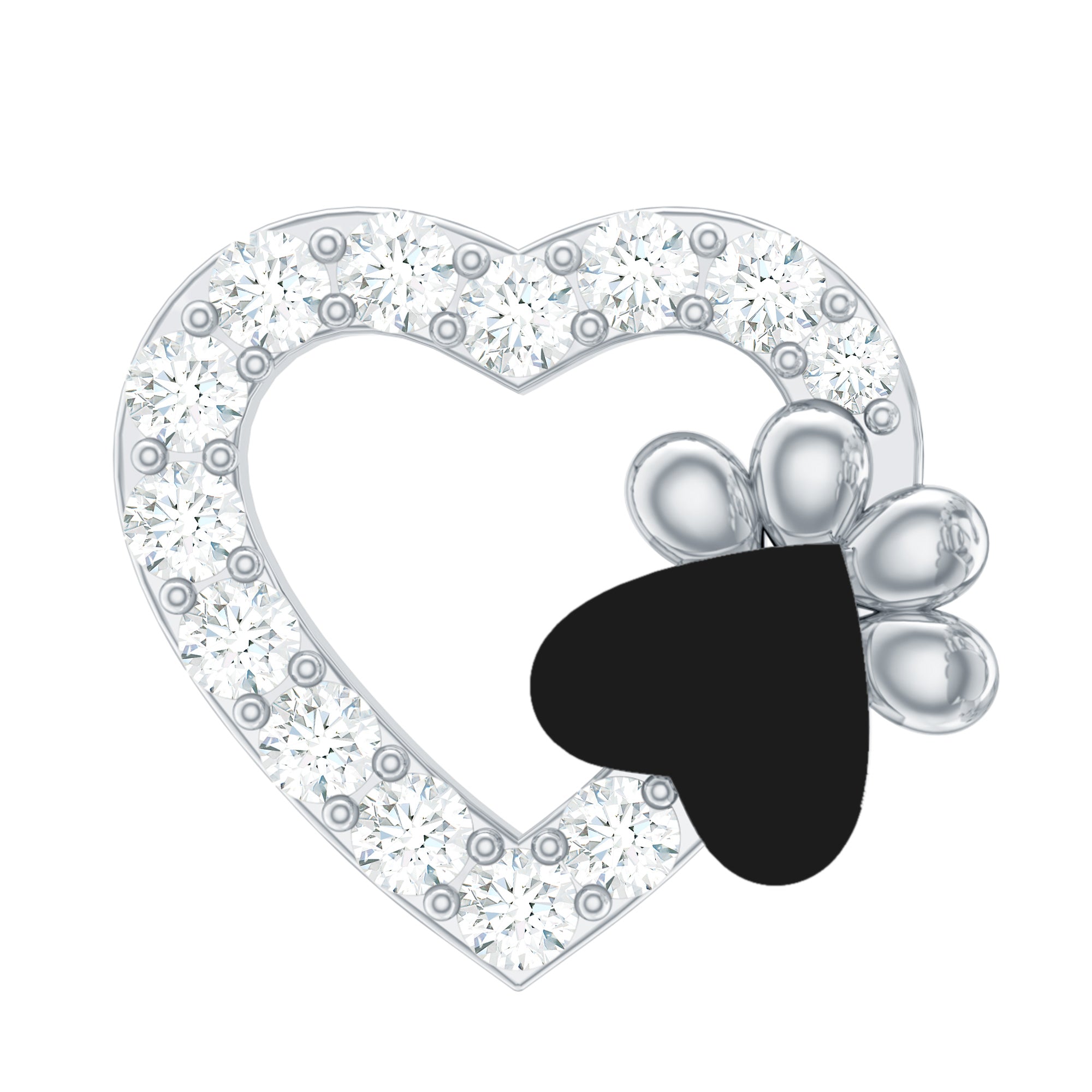- This charming piece features petite diamonds set in a pave setting with a black enameled heart.