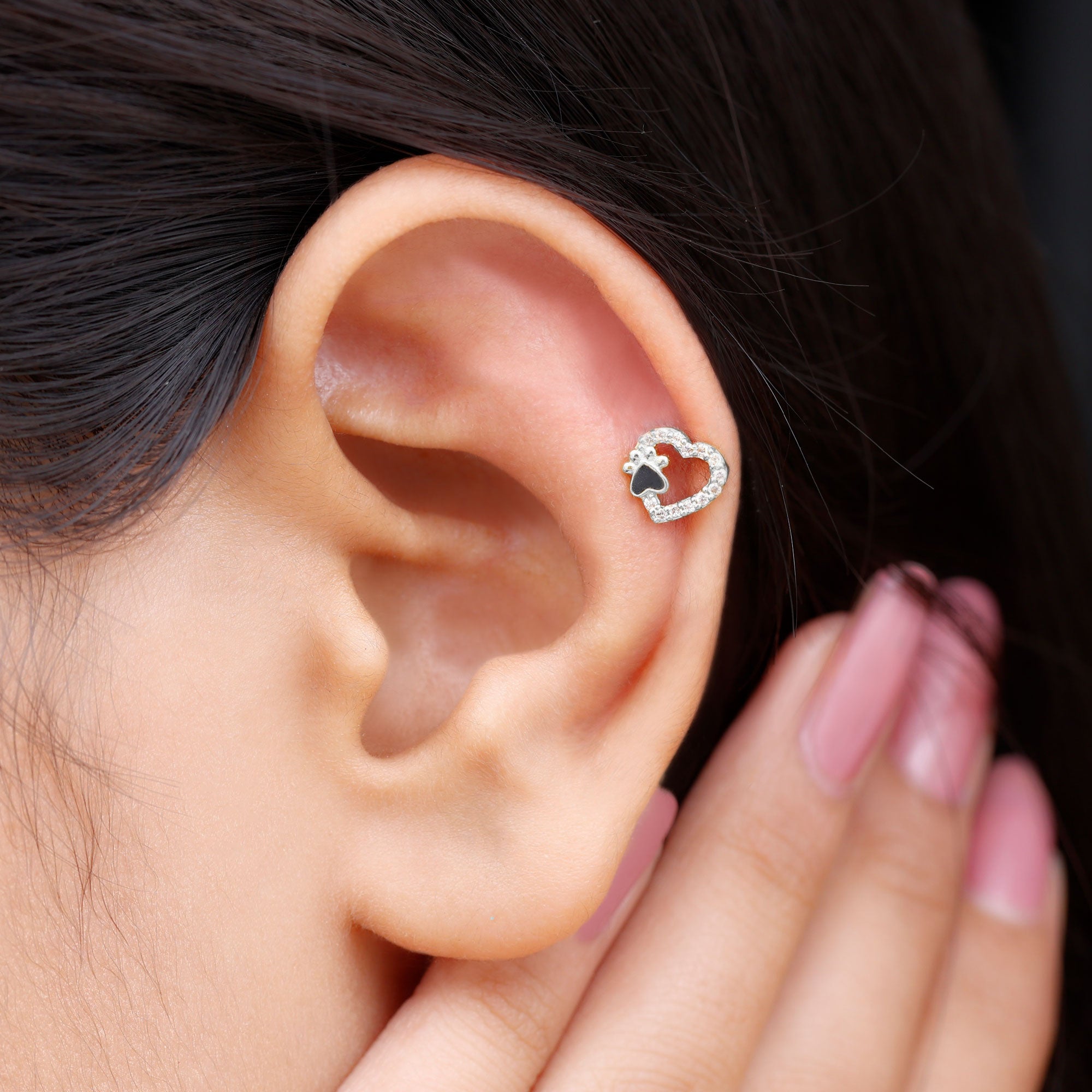 - This versatile Diamond Heart Earring can be easily slipped onto your Helix, Cartilage, or Upper Lobe Piercing, making it the perfect accessory for any occasion.