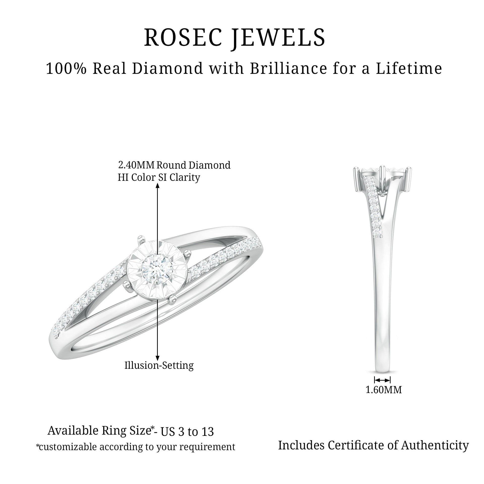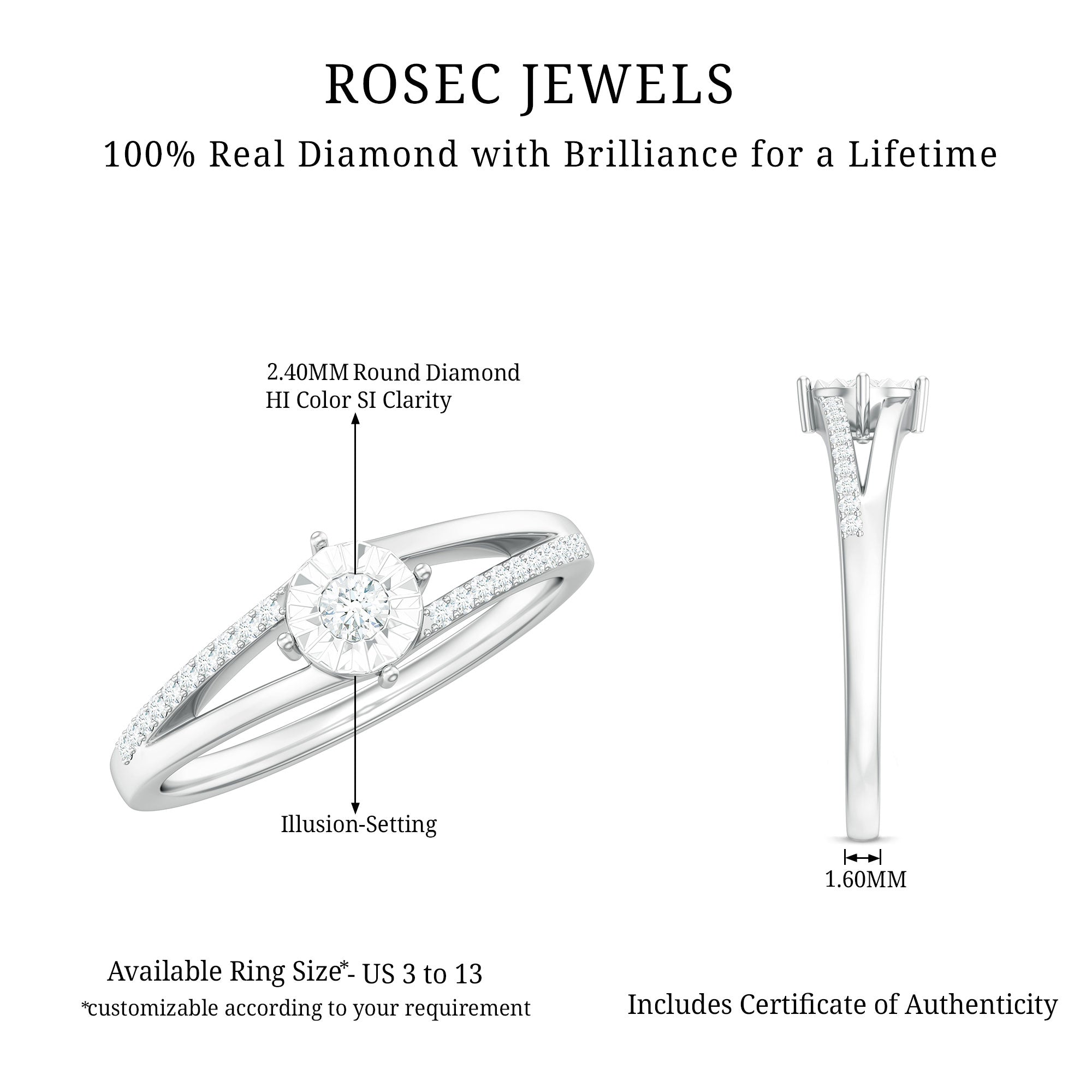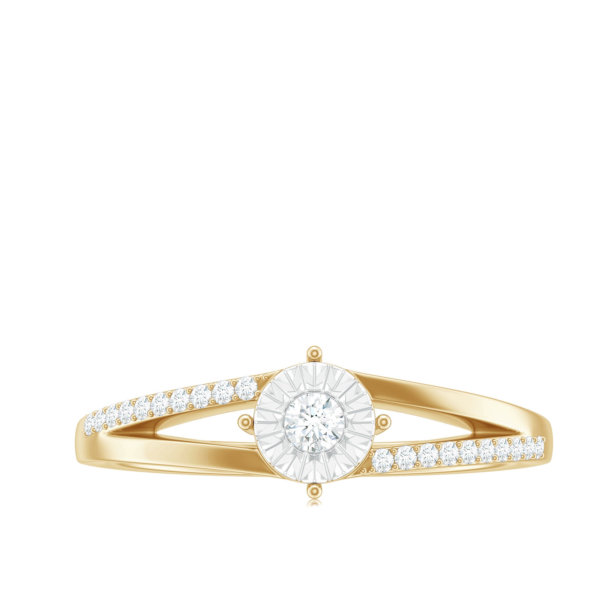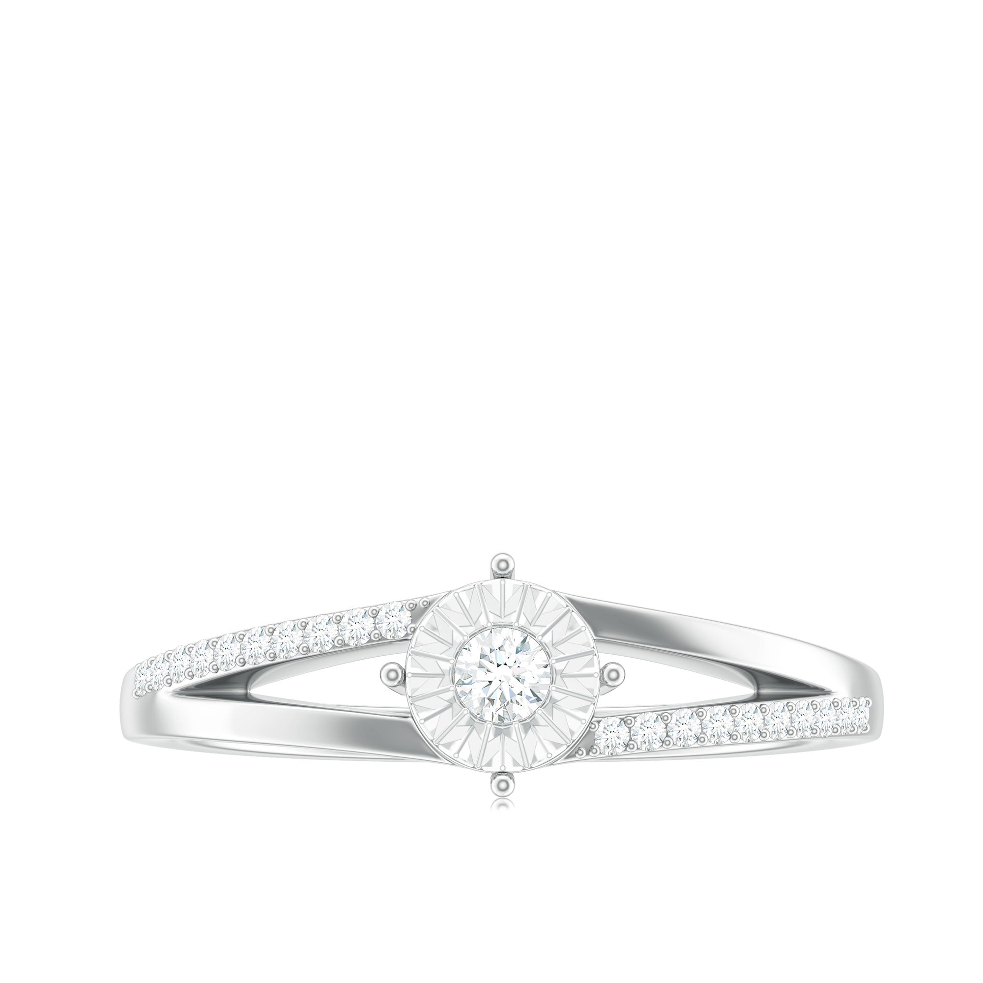 Spilt Shank Round Diamond Engagement Ring in Illusion Setting