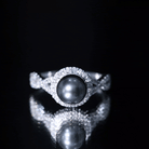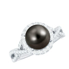 Real Tahitian Pearl and Diamond Crossover Engagement Ring