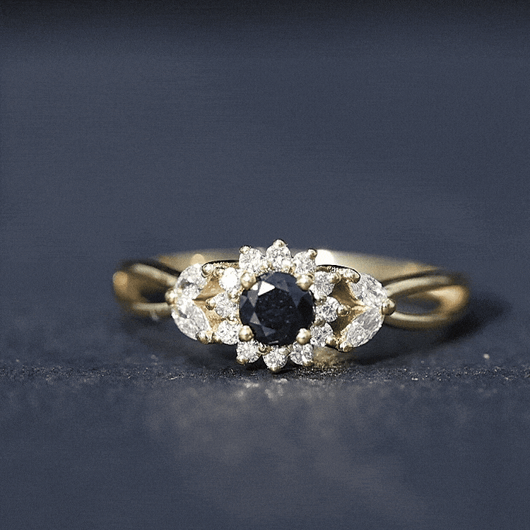 Rings that combine dark gemstones with diamond accents offer a unique alternative to traditional colorless gemstone jewelry. The contrast between tones creates a design that feels modern while still maintaining classic ring proportions.