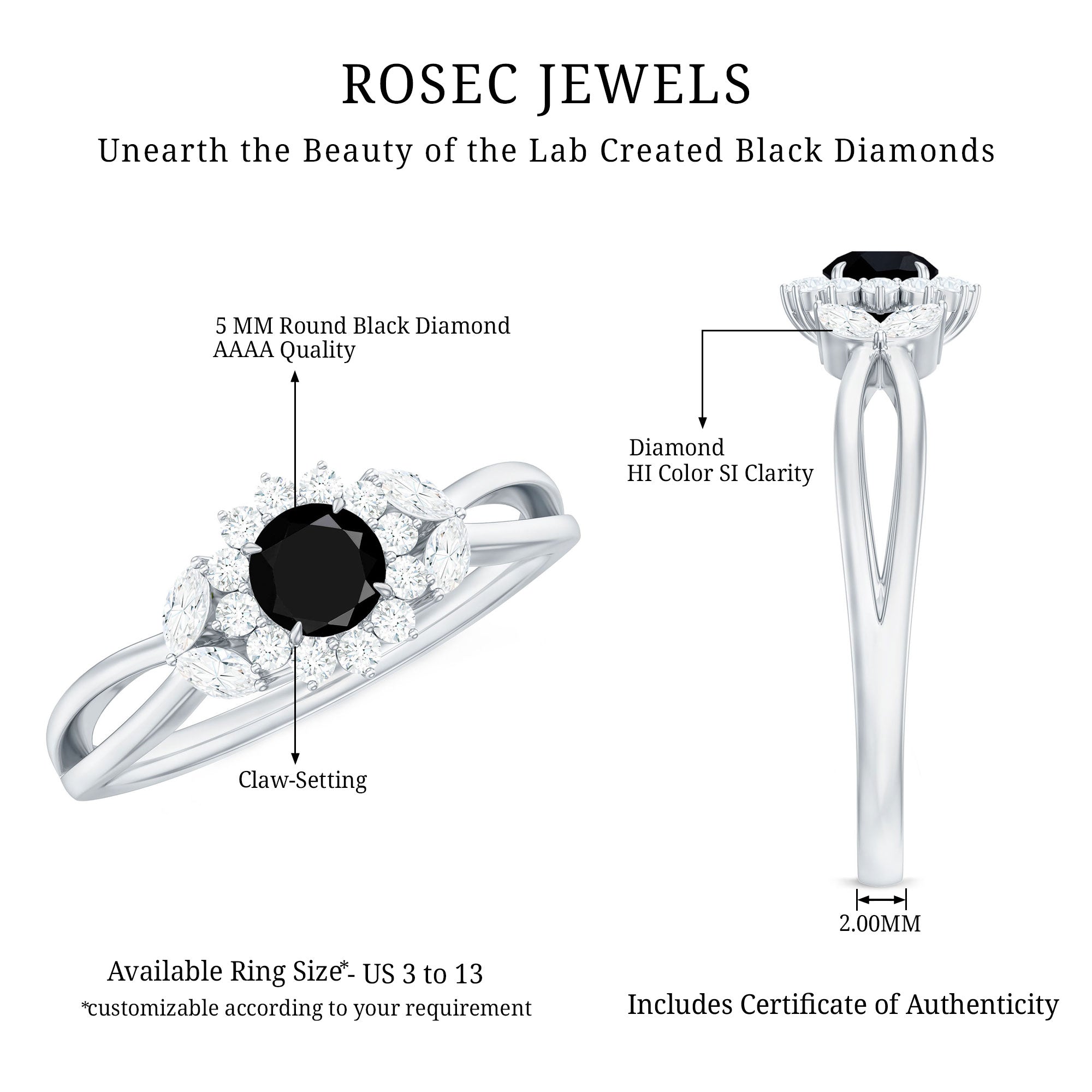 When paired with traditional diamonds, black diamonds create a distinctive contrast between deep tone and bright sparkle, enhancing the visual definition of the design.