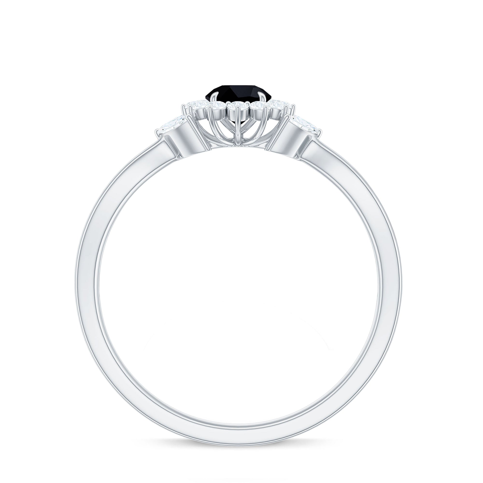 This ring features a floral-inspired centerpiece crafted with created black diamonds, complemented by diamond accents that introduce contrast and brilliance. The flower motif creates a decorative focal point while the darker gemstones provide a bold visual character.