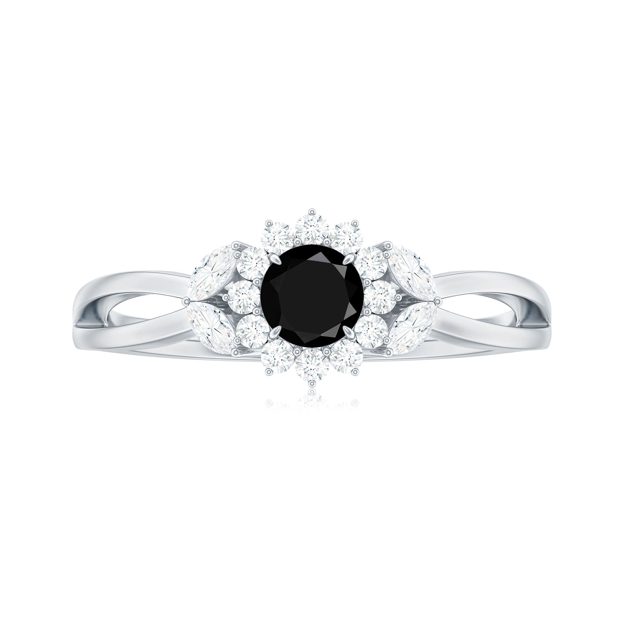 Split Shank Created Black Diamond Flower Ring with Diamond Accent