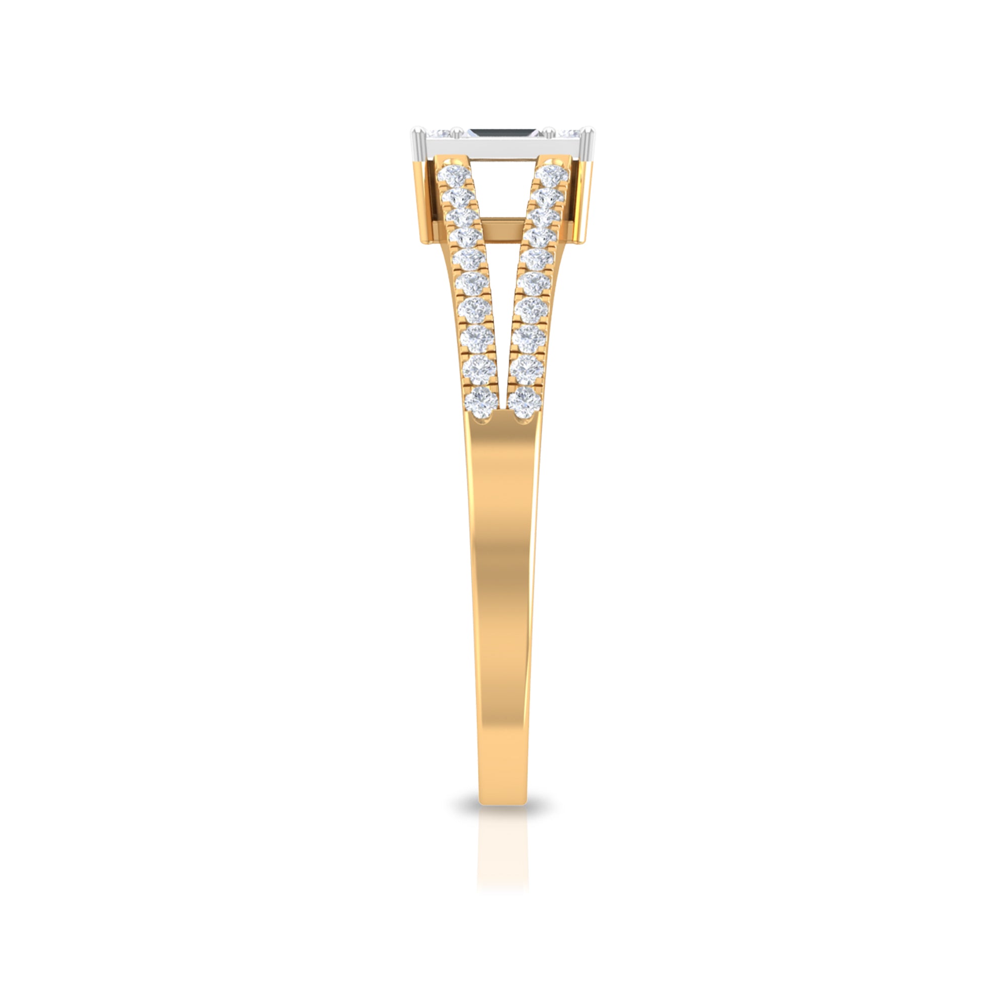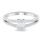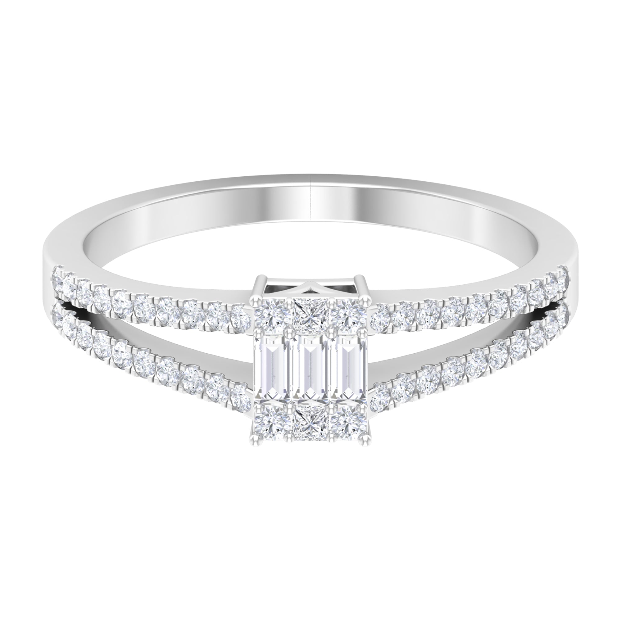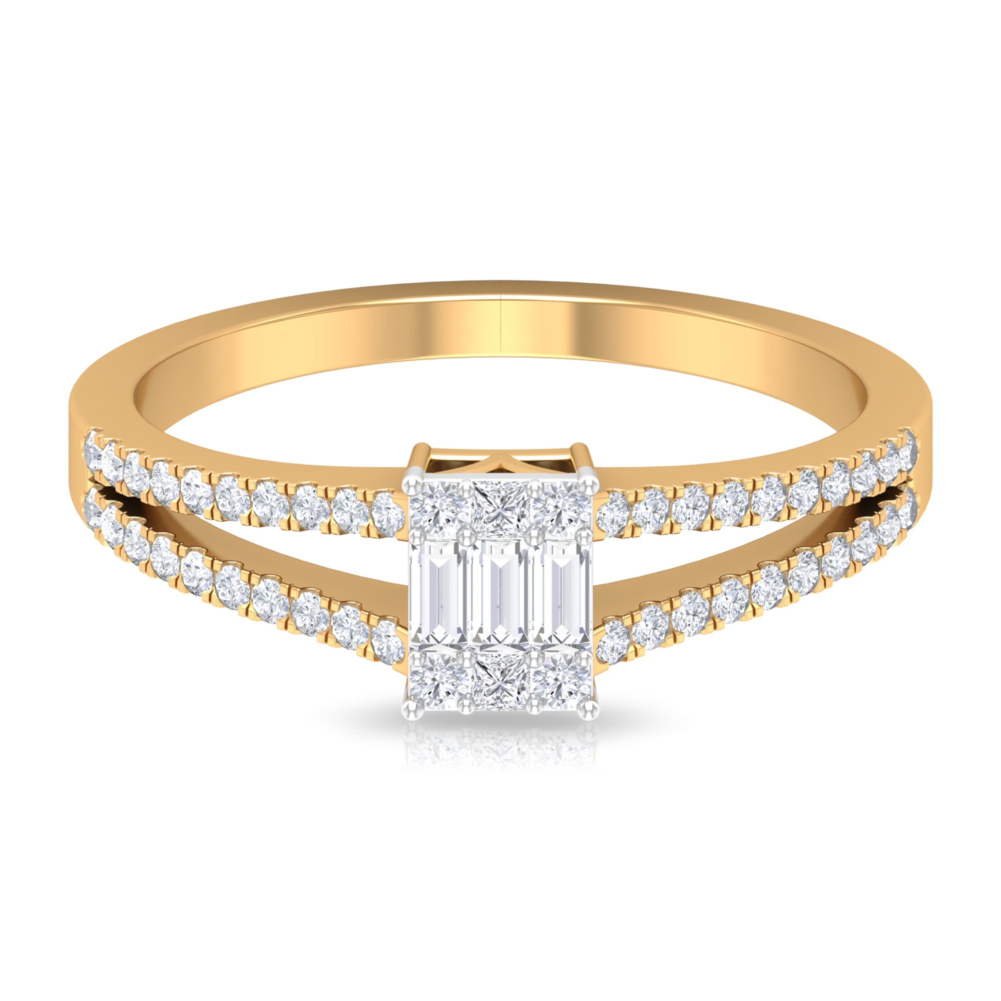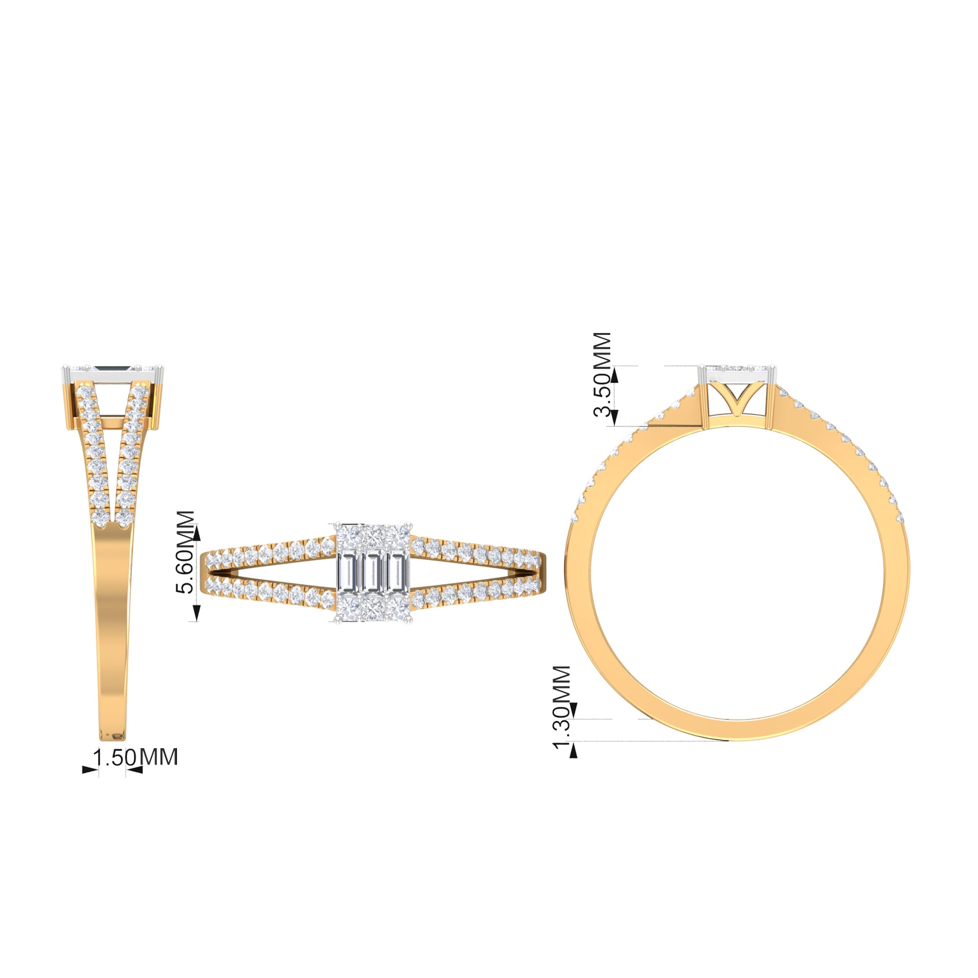 Experience love and happiness with our Engagement Ring featuring Baguette Cut, Princess Cut and Round Cut Diamonds embellished in Prong Setting, for you to feel unique. This Illusion Set Diamond Engagement Ring with Split Shank is the one that she will cherish forever.