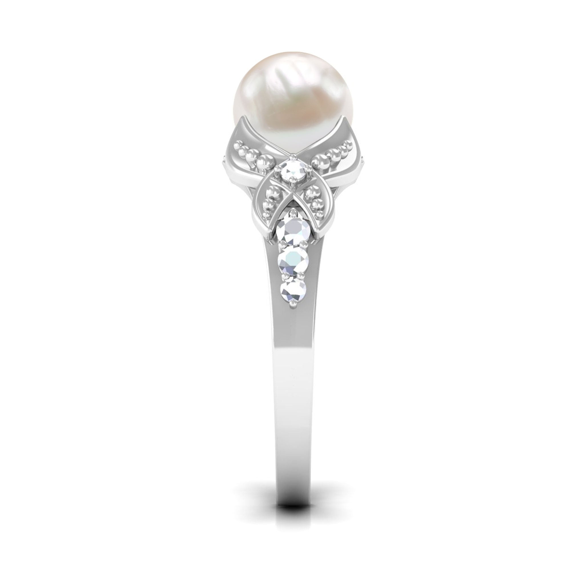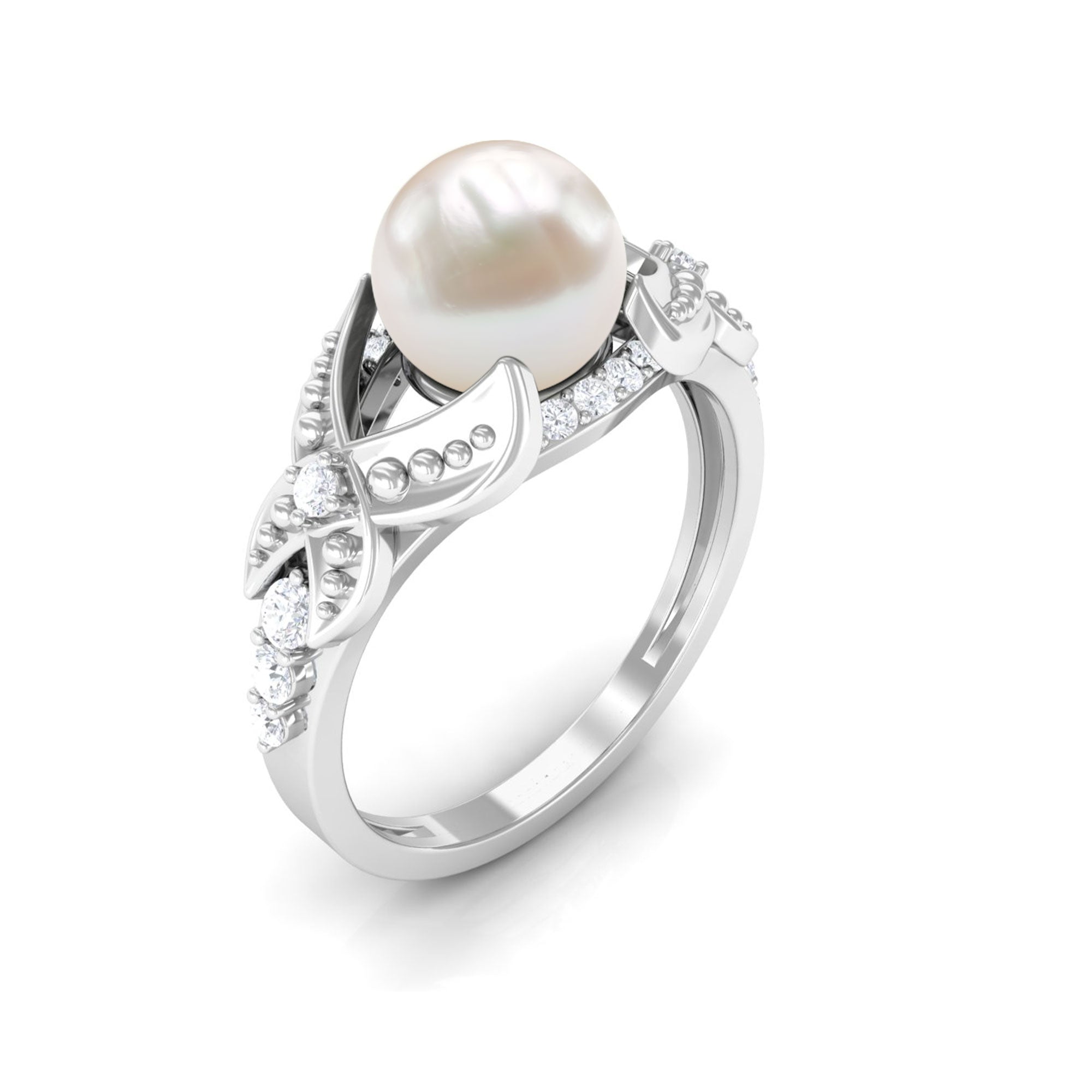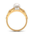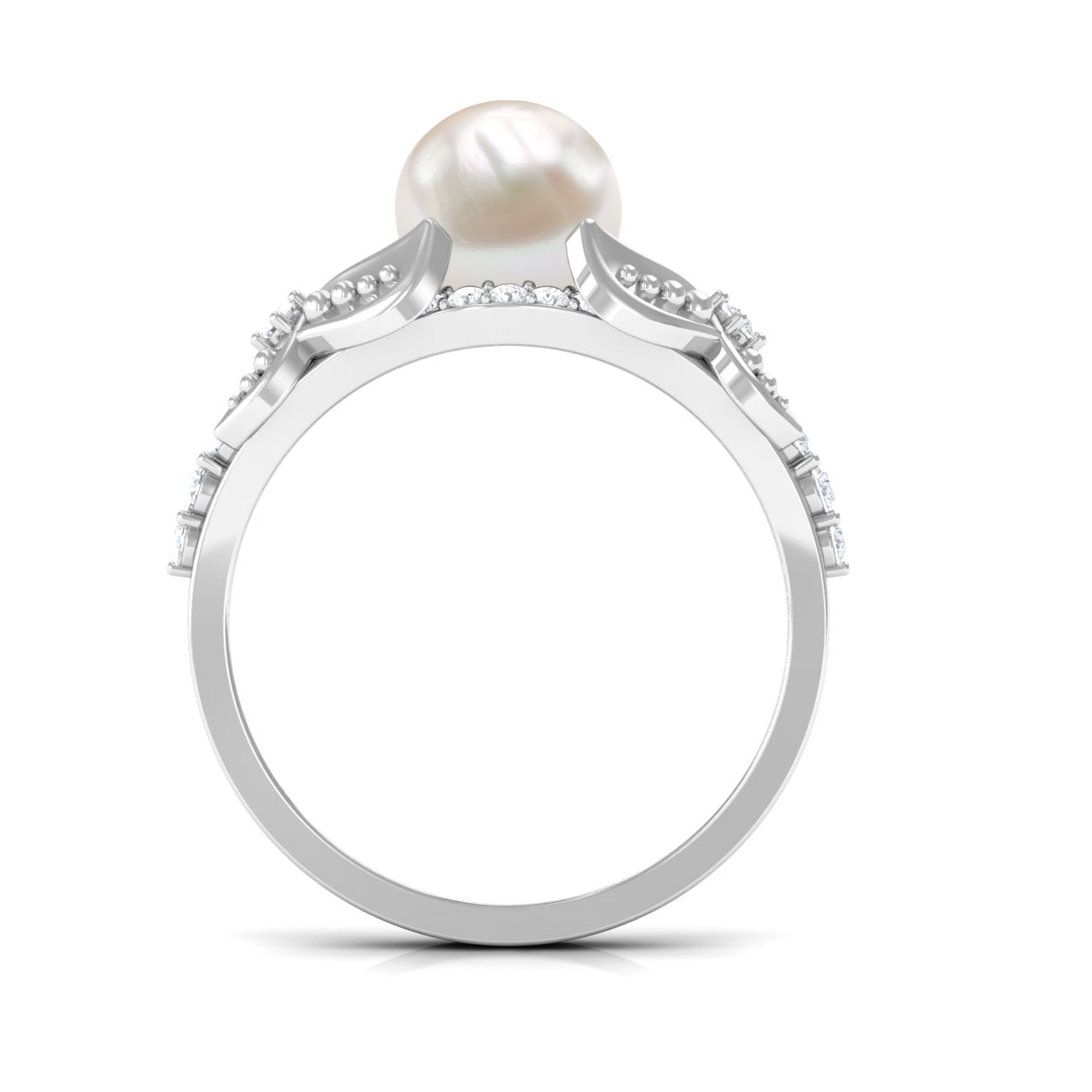 Split Shank Freshwater Pearl Solitaire Engagement Ring with Diamond