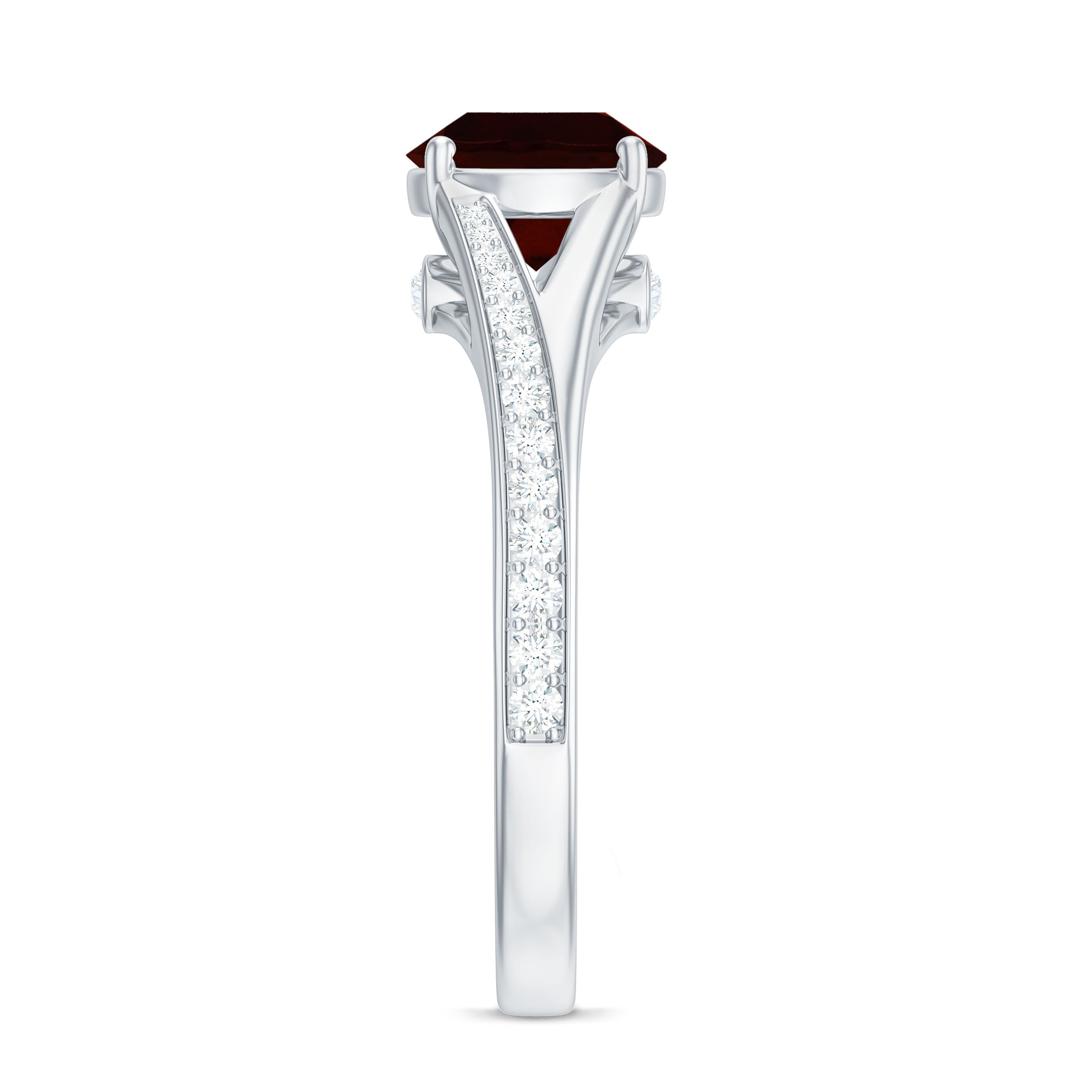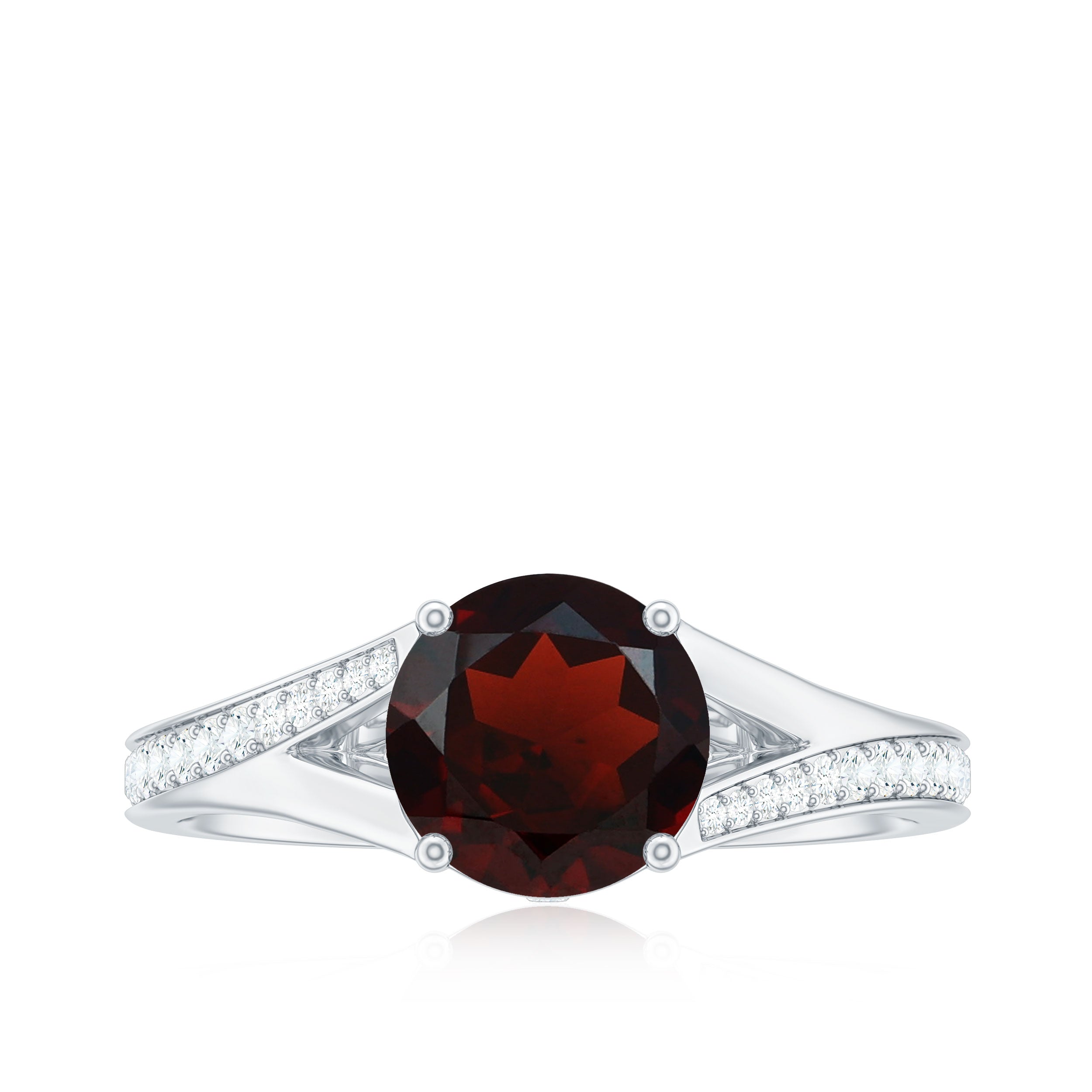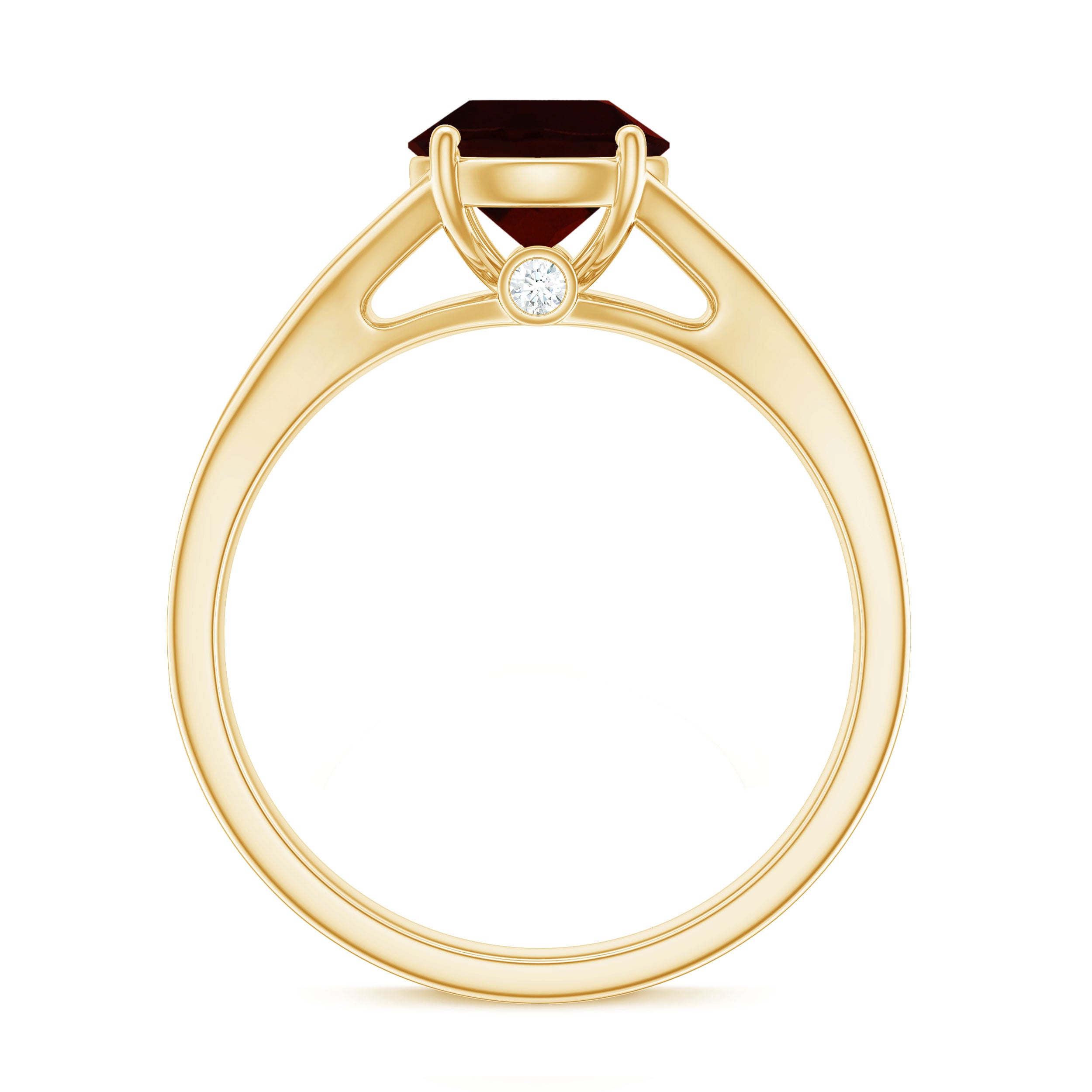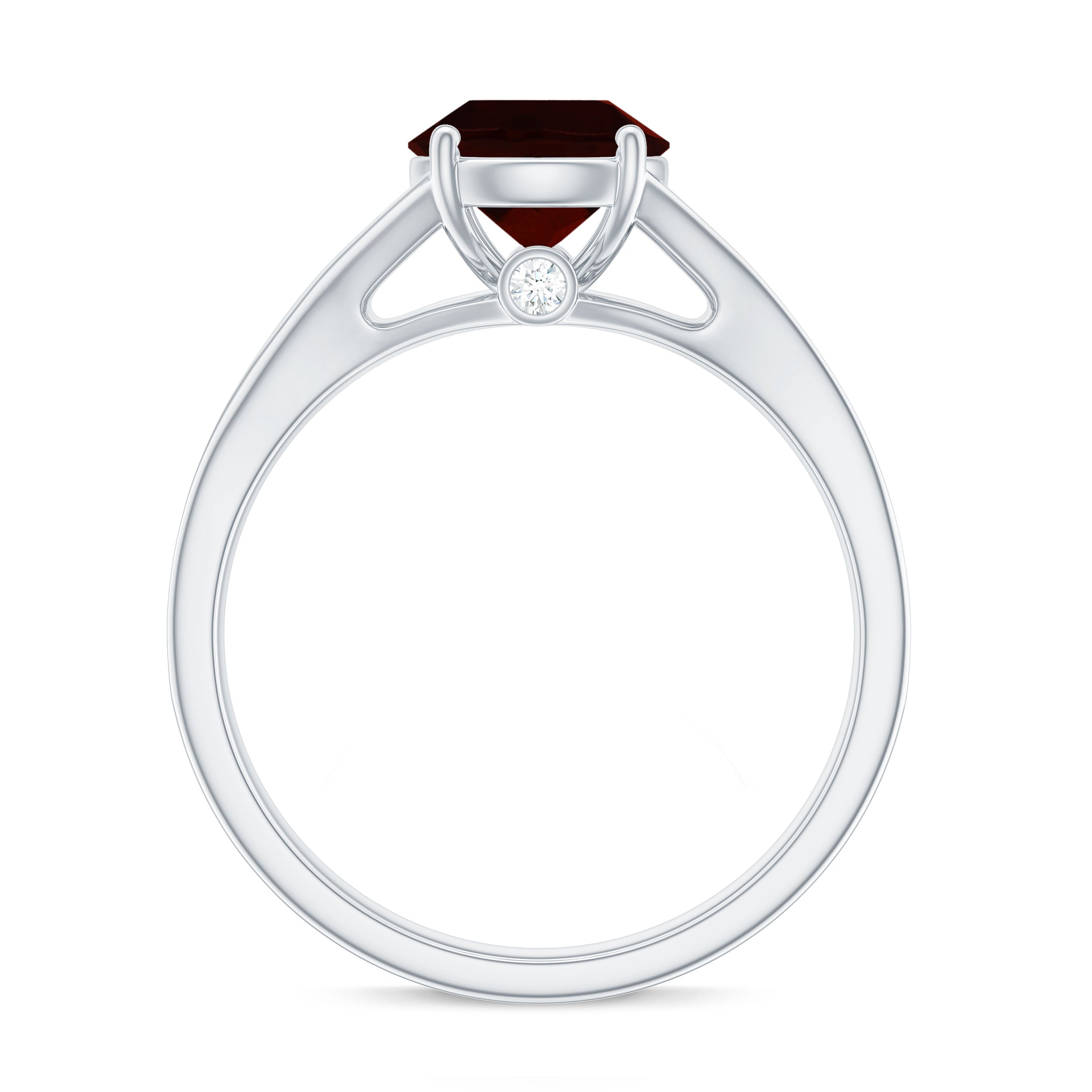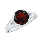 Split Shank Garnet Solitaire Engagement Ring with Diamond