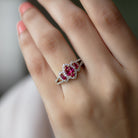 Split Shank Lab Grown Ruby and Diamond Cluster Engagement Ring