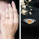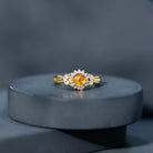 Split Shank Orange Sapphire Flower Engagement Ring with Diamond