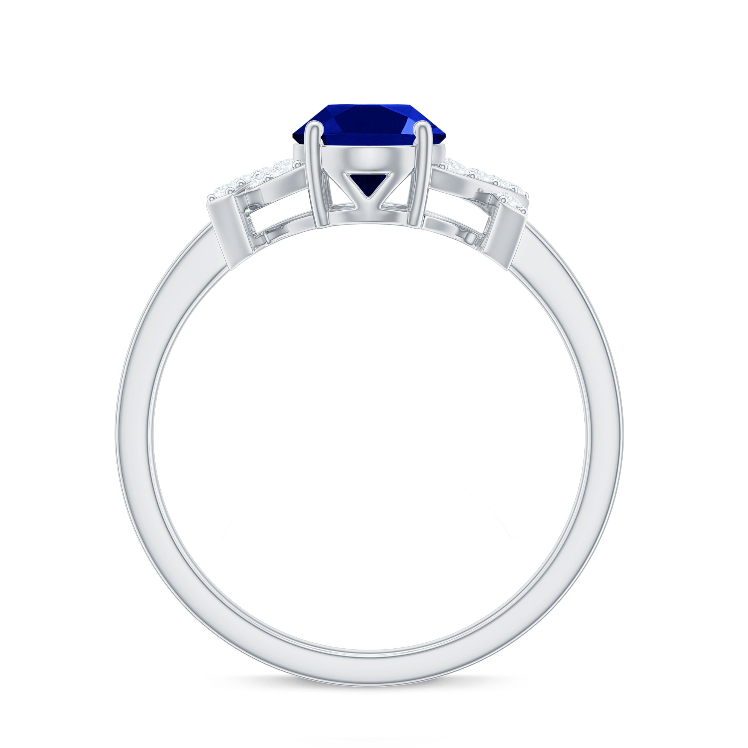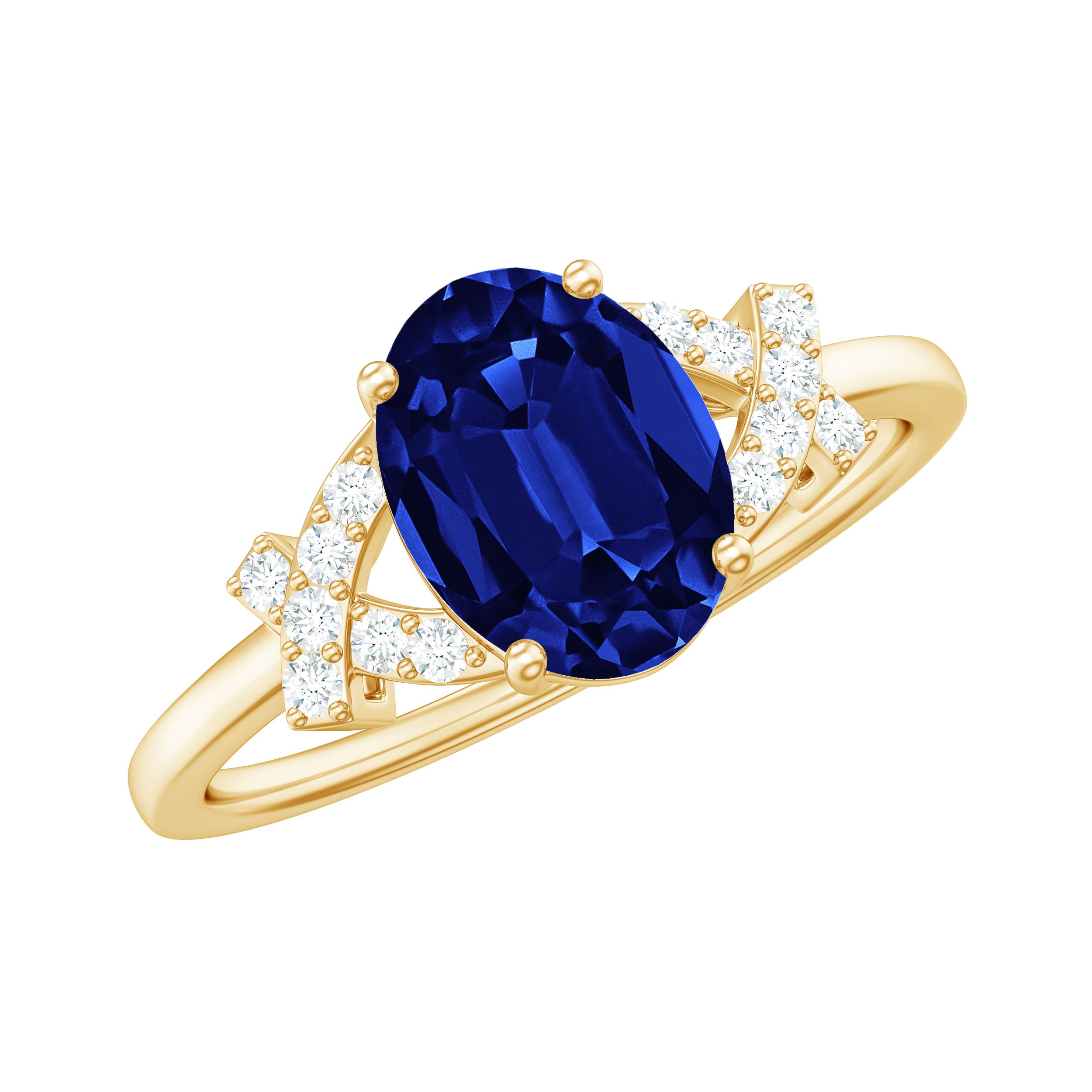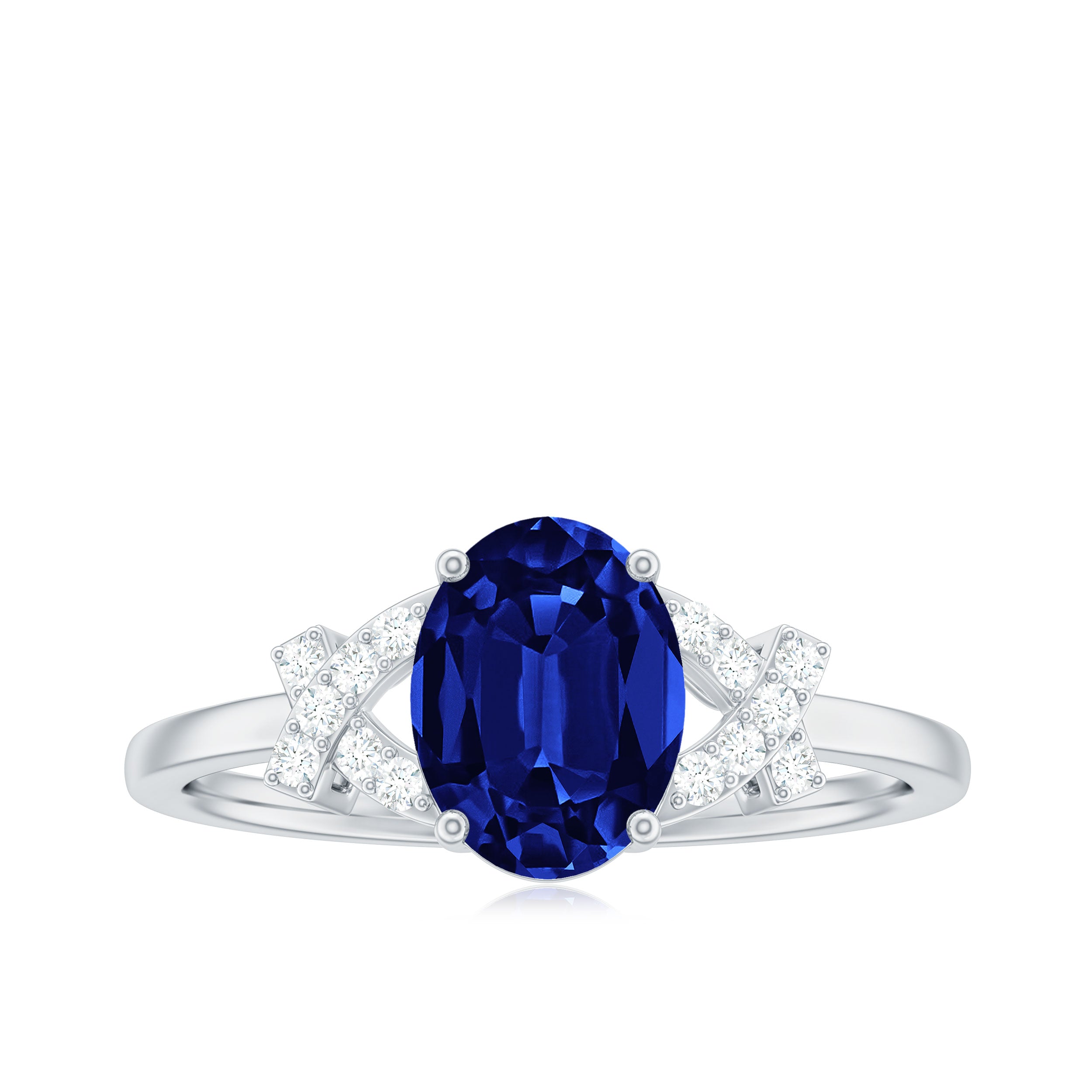Split Shank Oval Created Blue Sapphire and Diamond Solitaire Engagement Ring