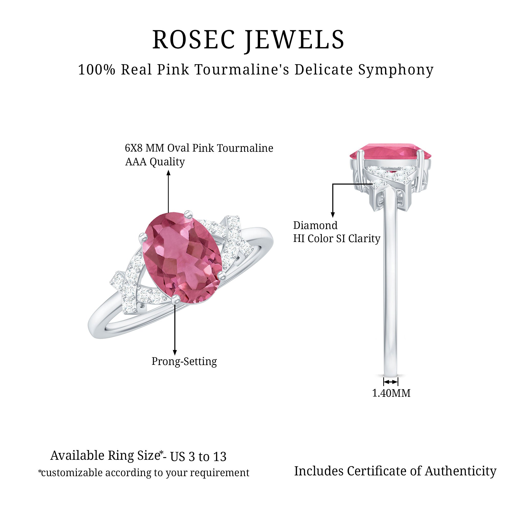 Split Shank Oval Pink Tourmaline and Diamond Solitaire Engagement Ring