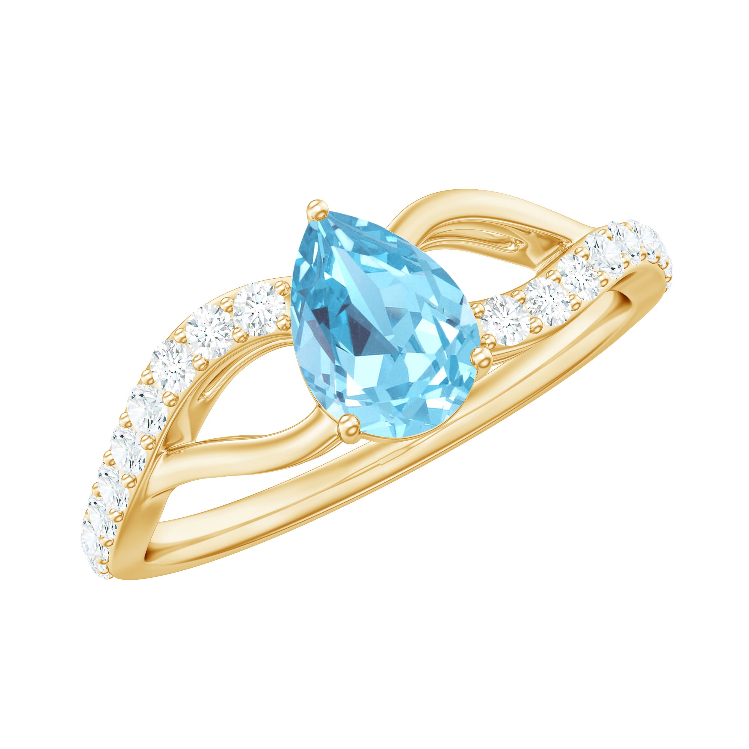 Split Shank Pear Cut Aquamarine Solitaire Ring with Diamond