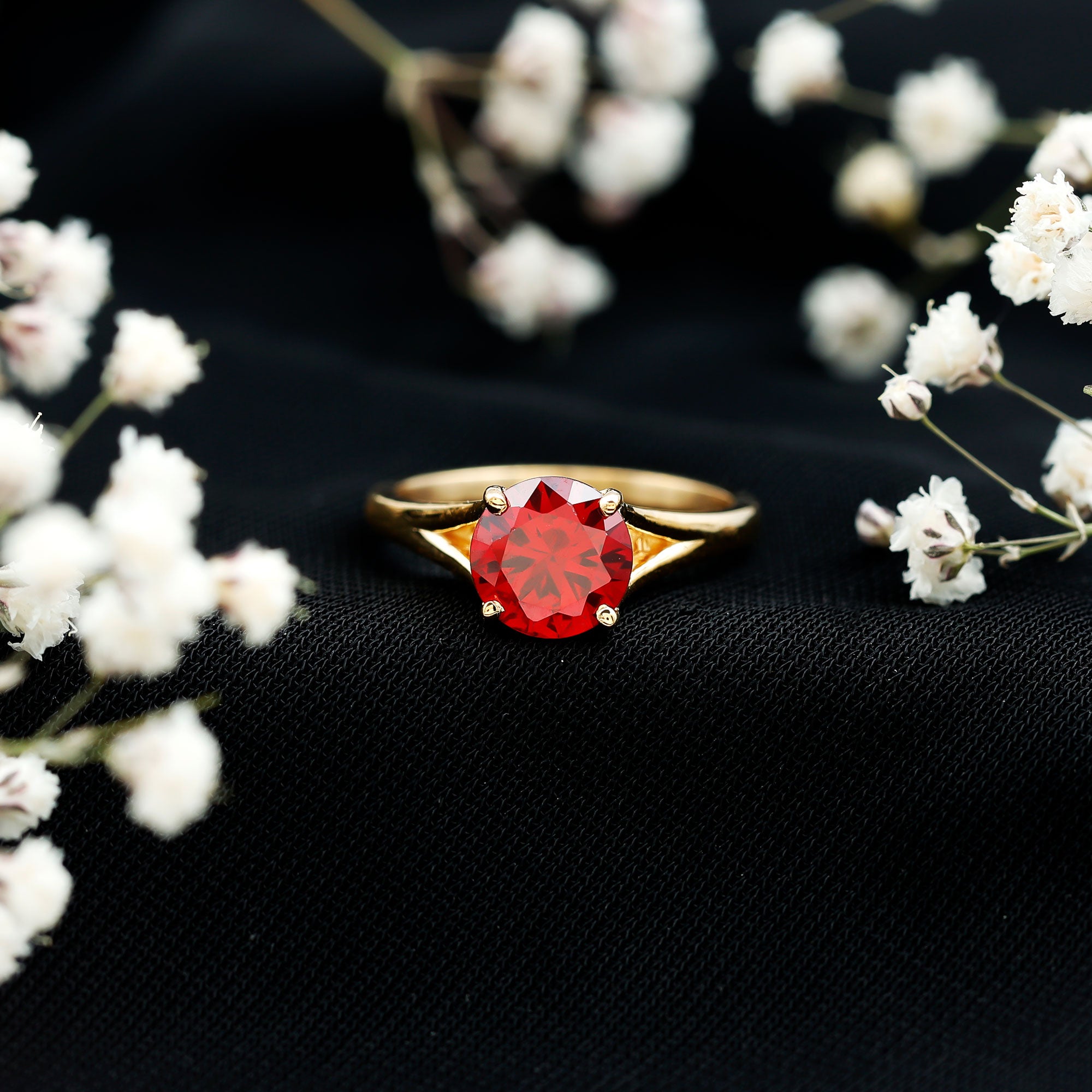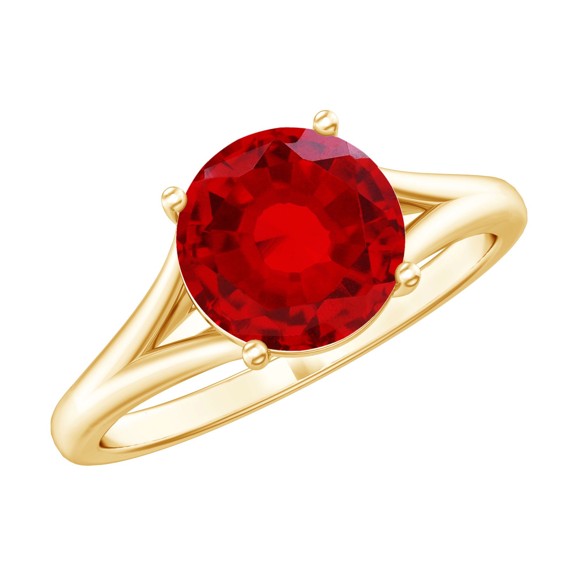 Split Shank Round Created Ruby Solitaire Ring with Surprise Diamond