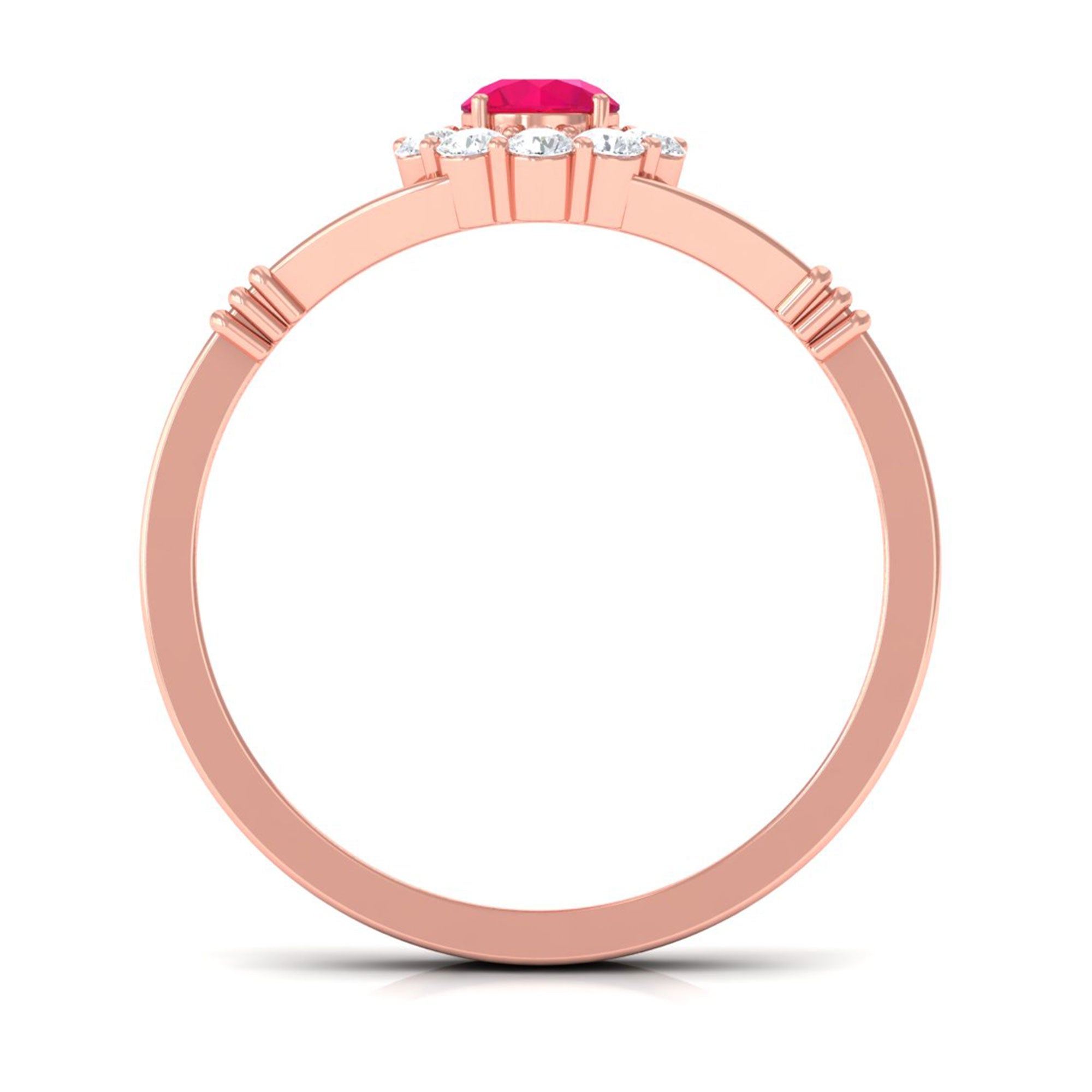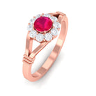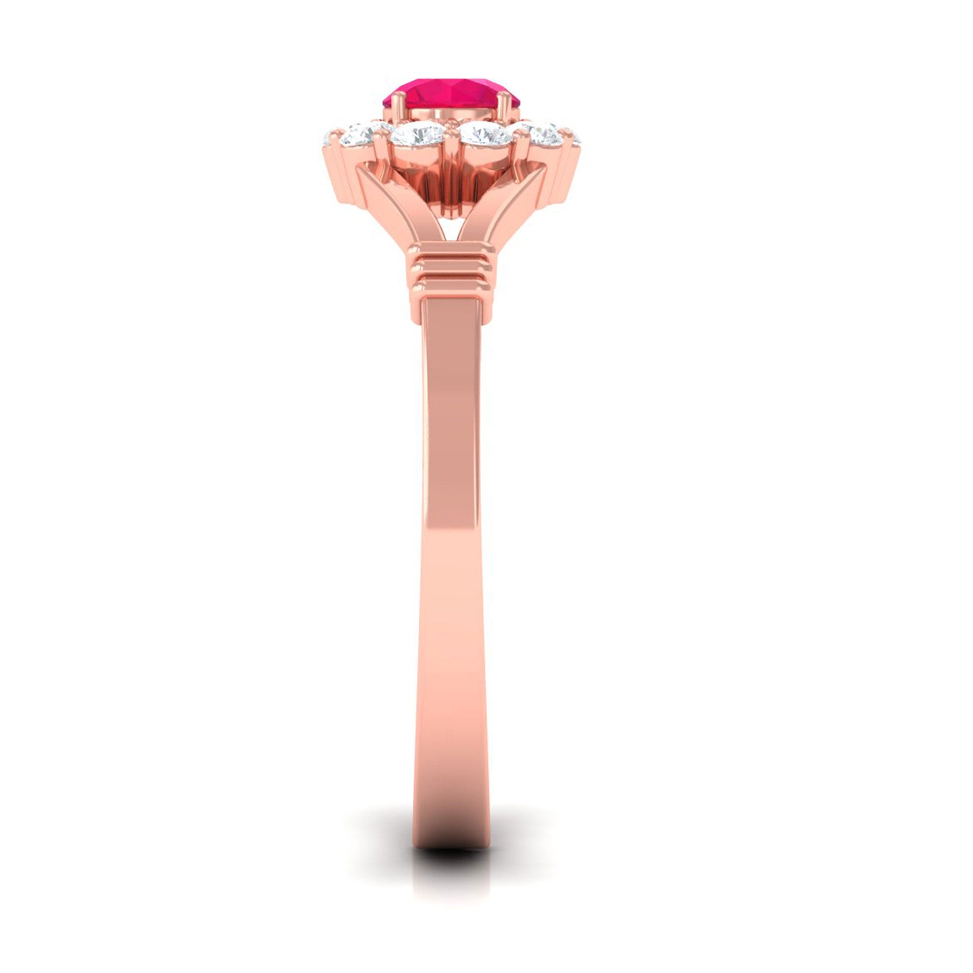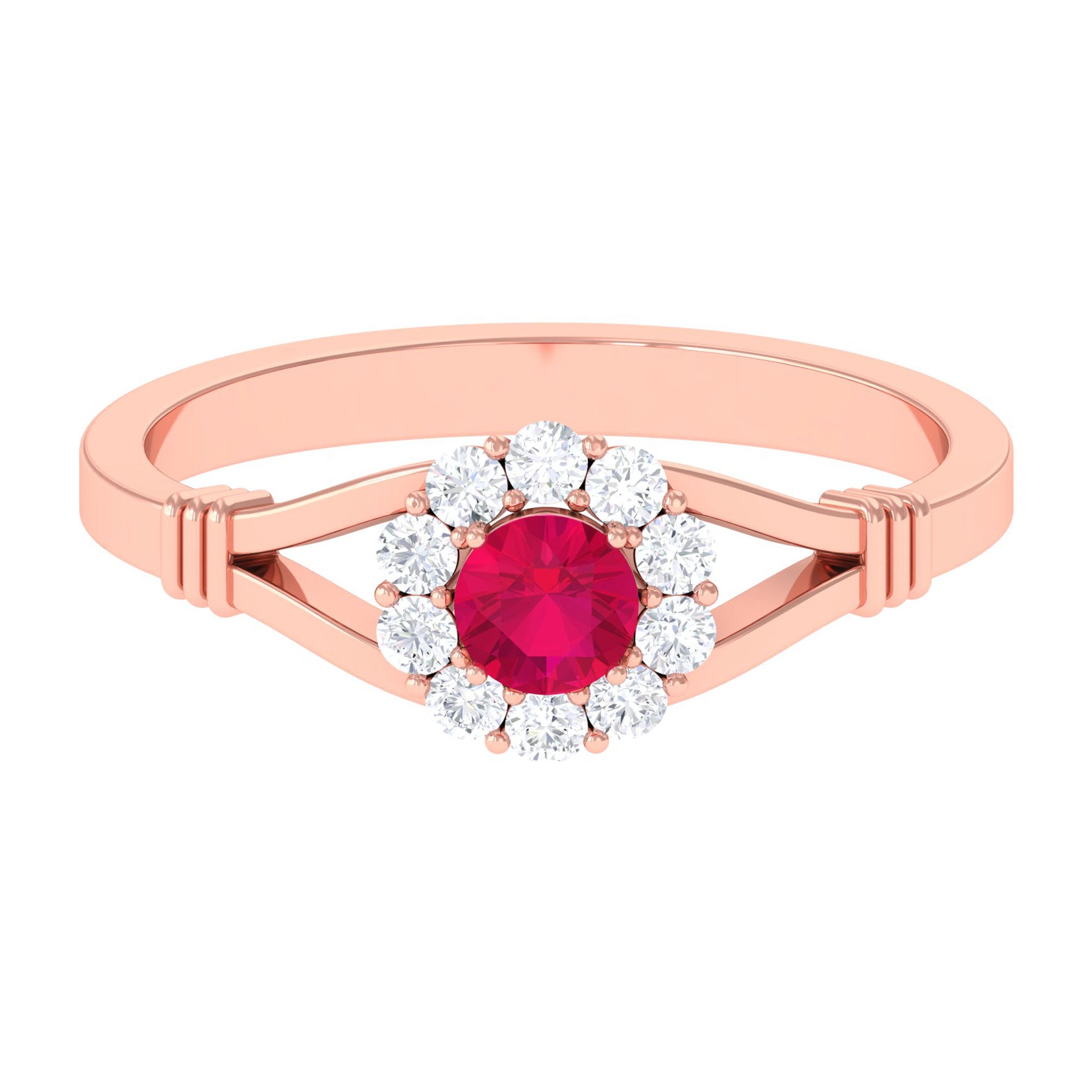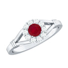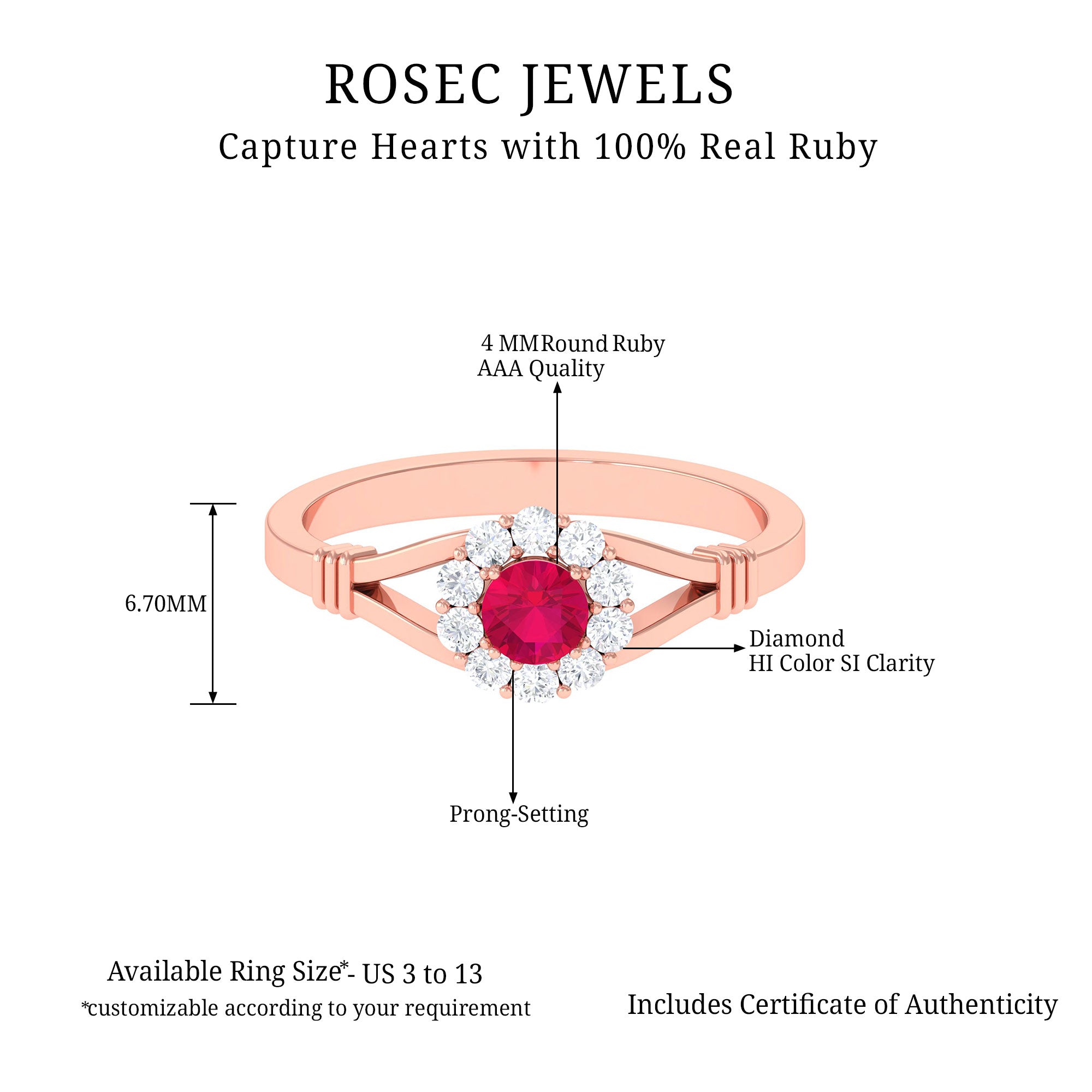 Split Shank Ruby and Diamond Halo Engagement Ring