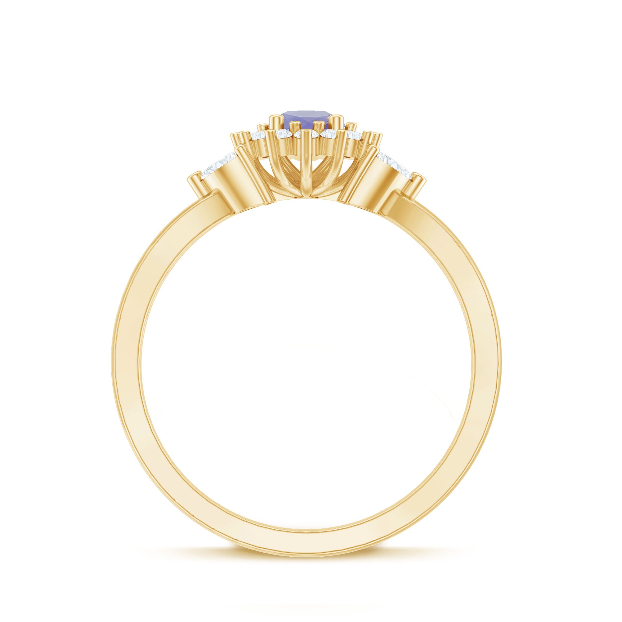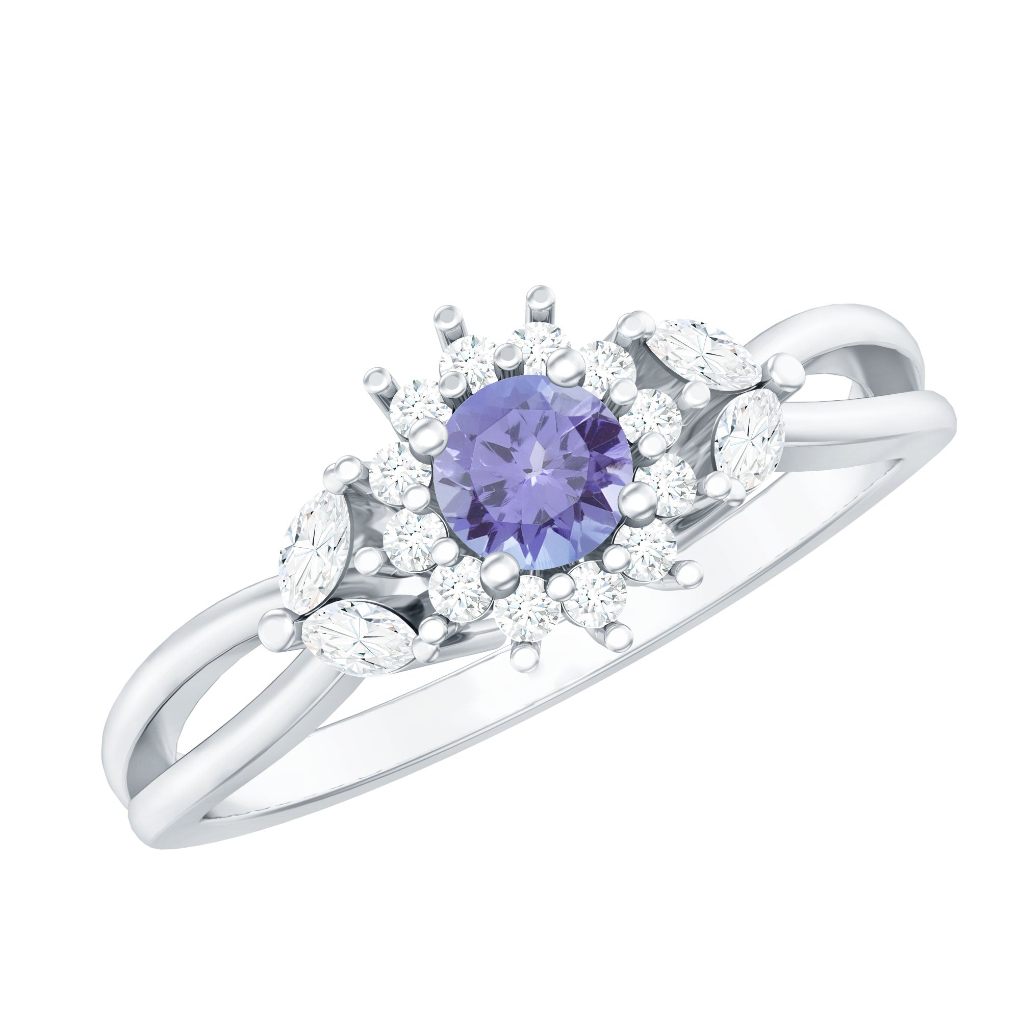 Split Shank Tanzanite Flower Engagement Ring with Diamond
