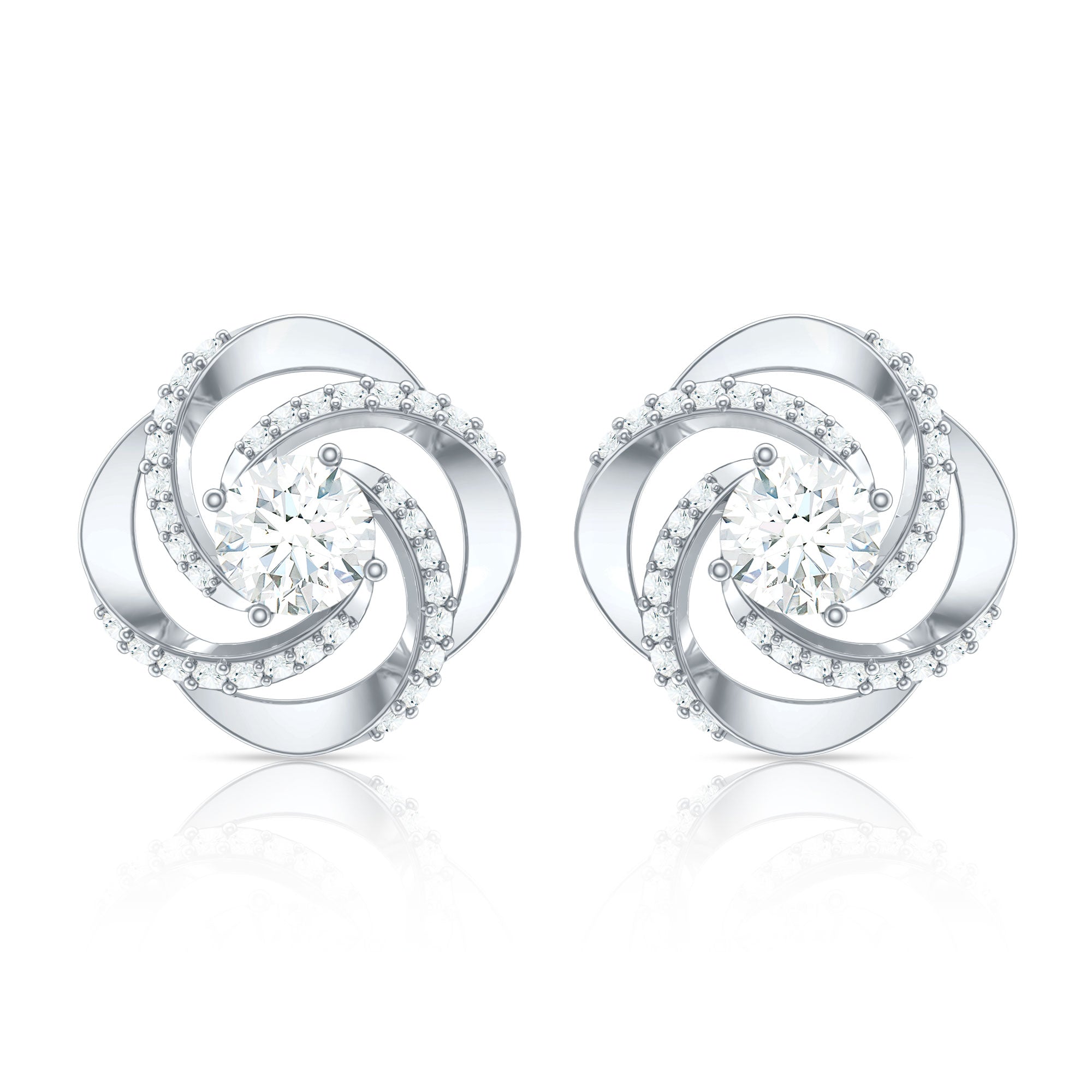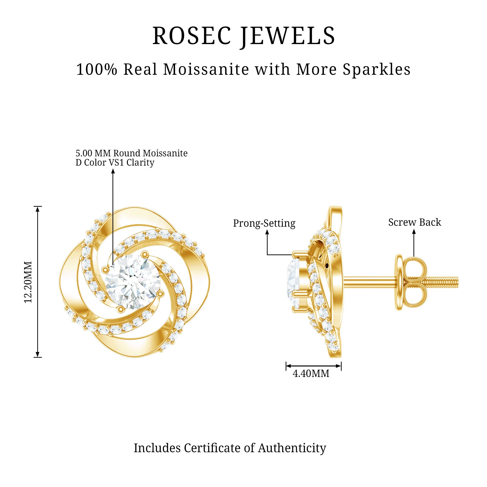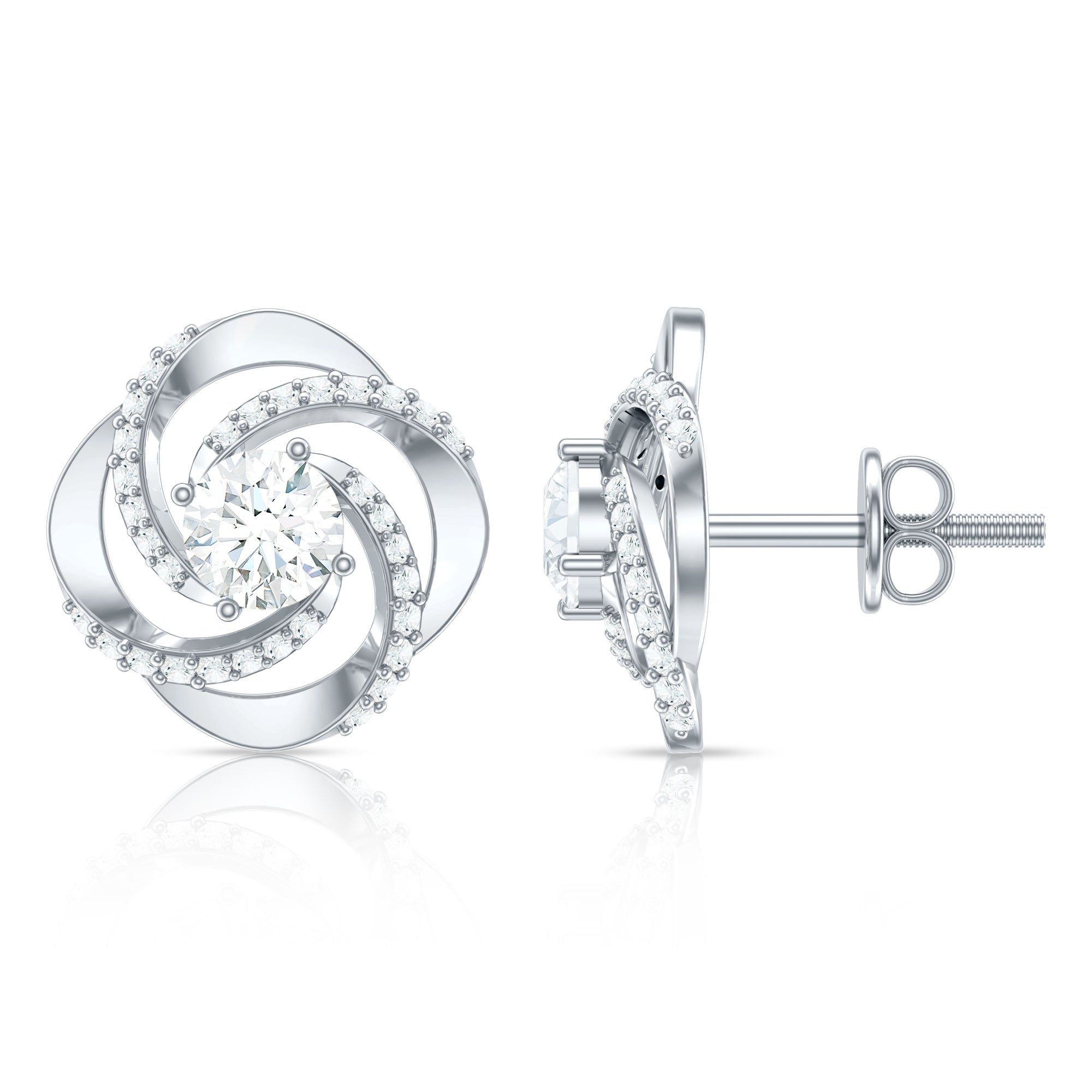 Swirl Stud Earrings Round Shape Moissanite in Prong Setting