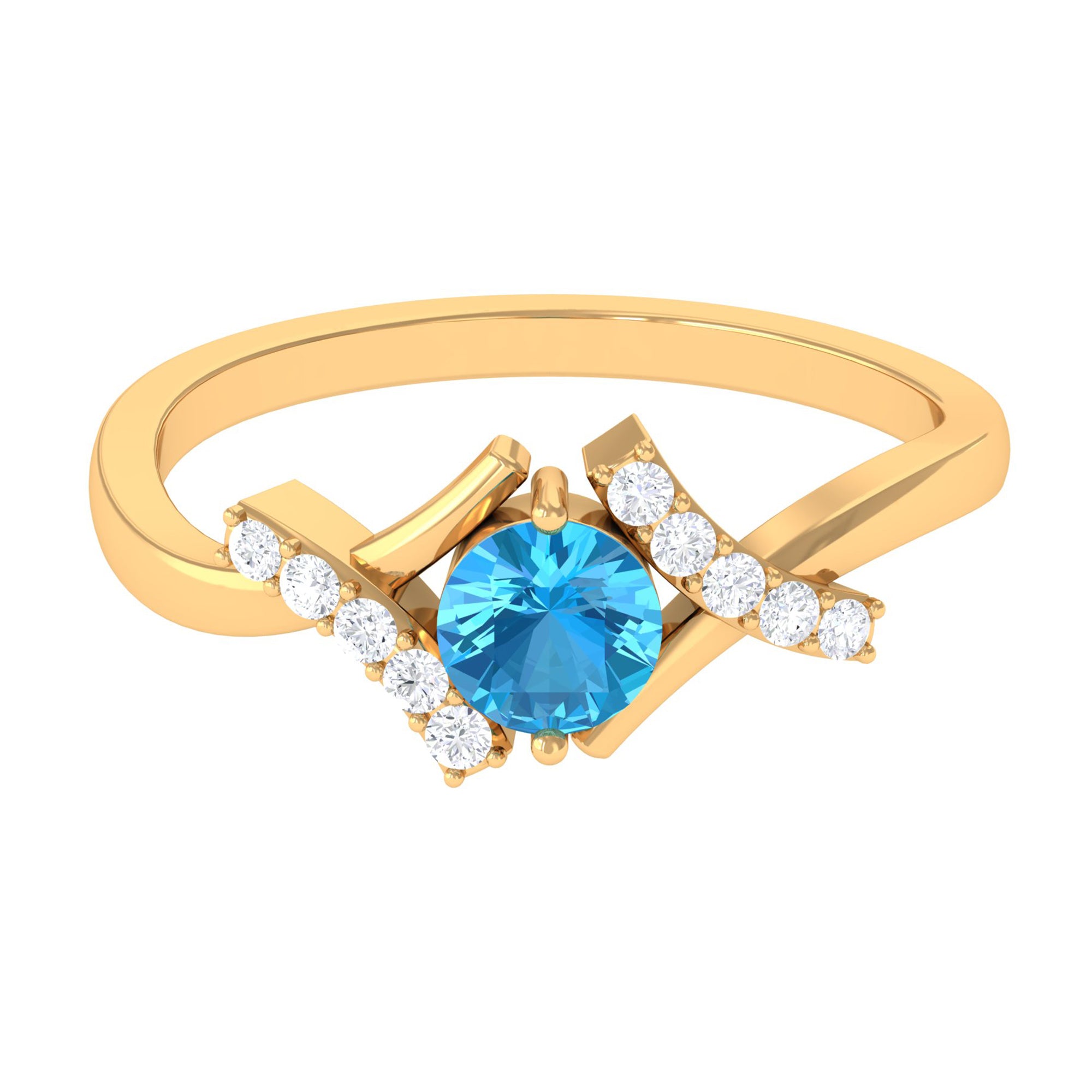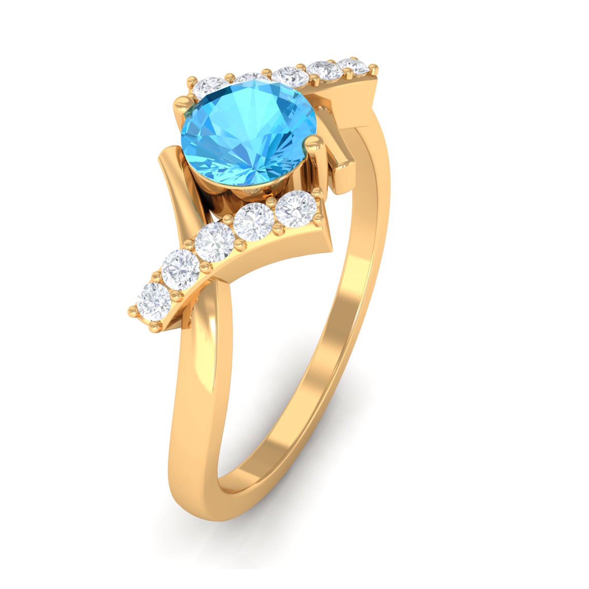 Swiss Blue Topaz and Diamond Designer Promise Ring
