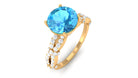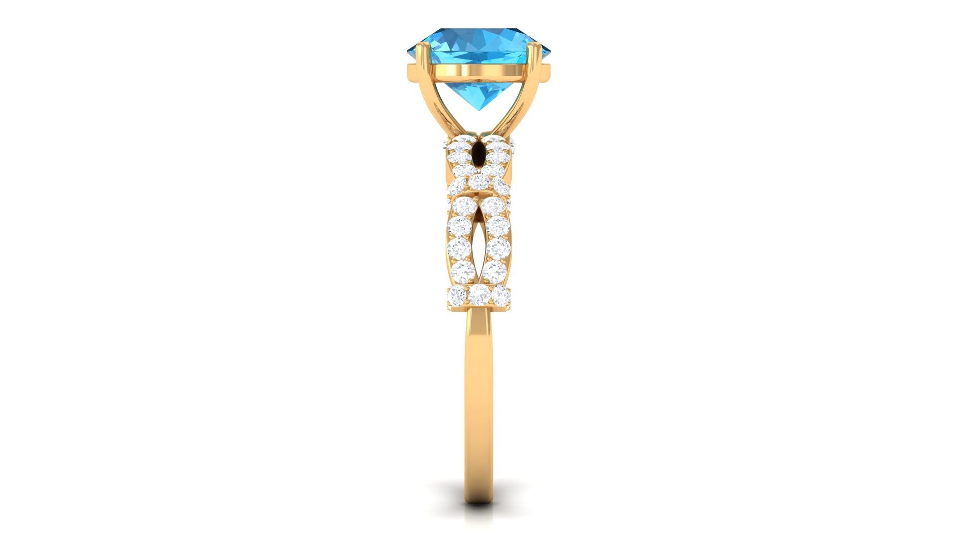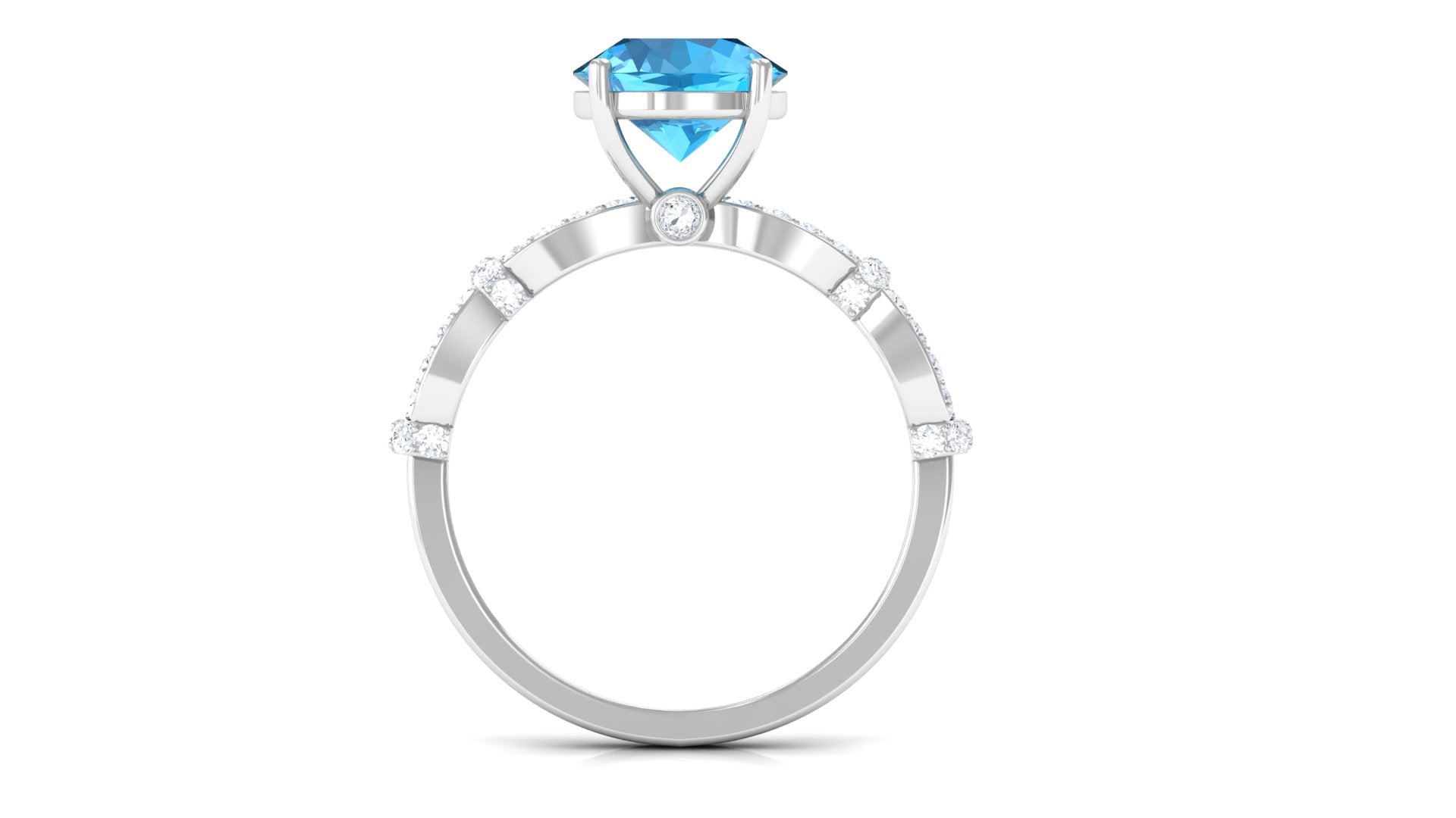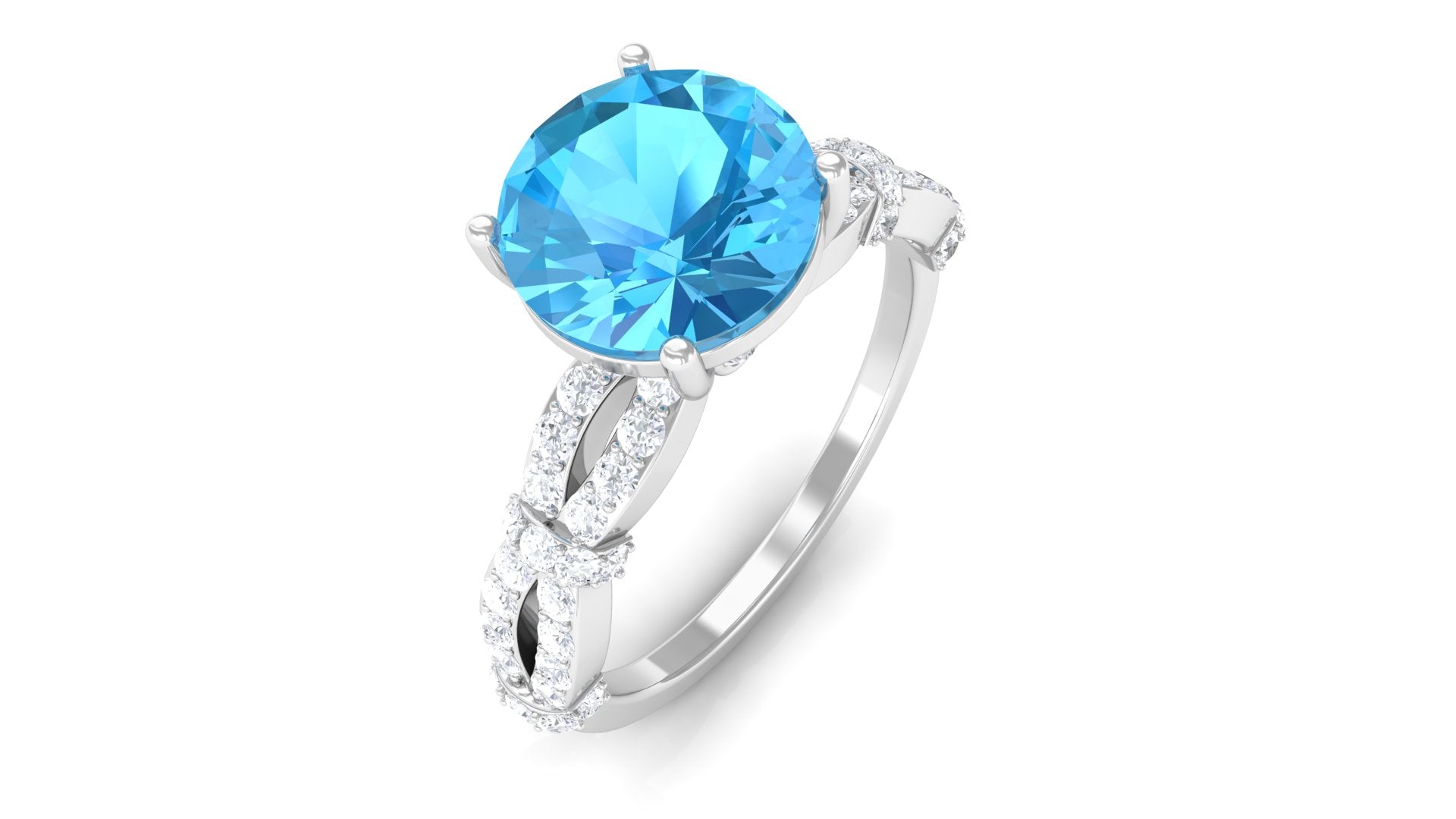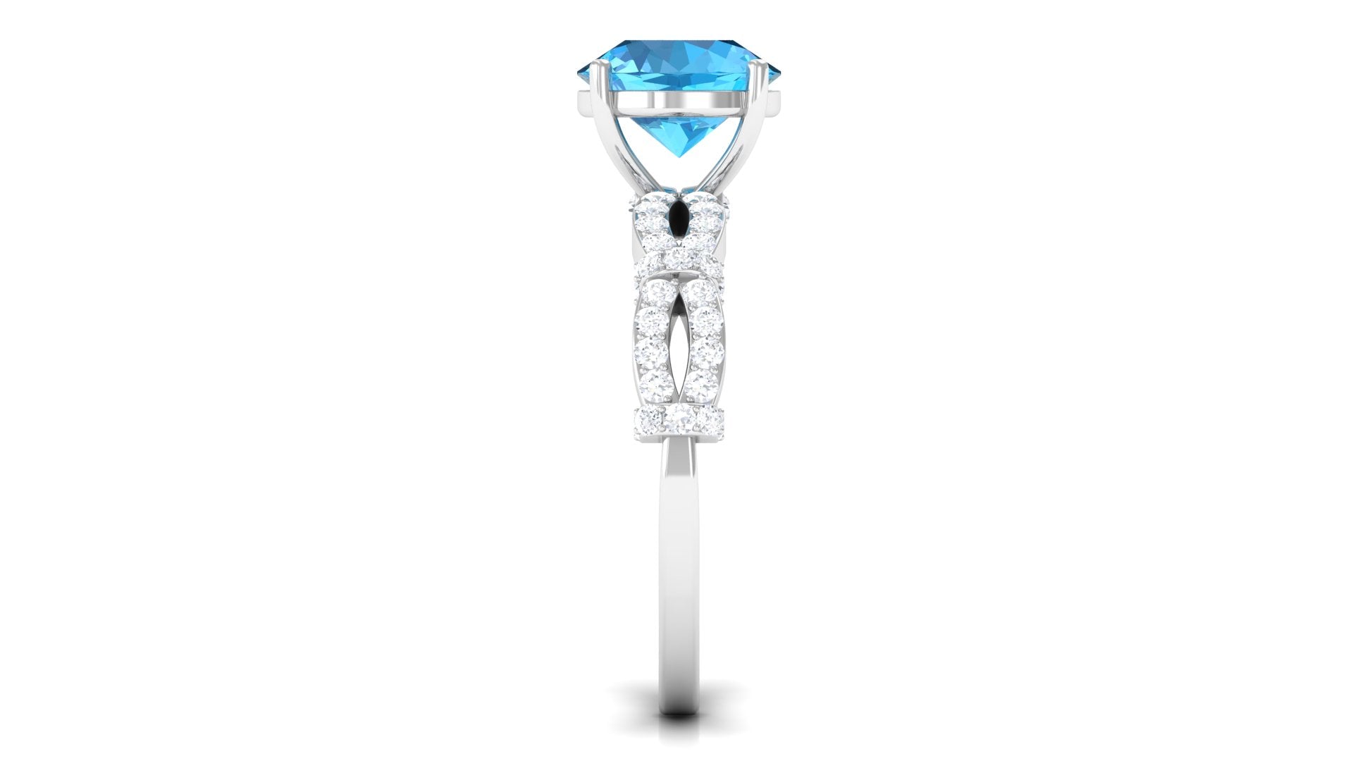 Swiss Blue Topaz and Diamond Solitaire Engagement Ring with Criss Cross Shank