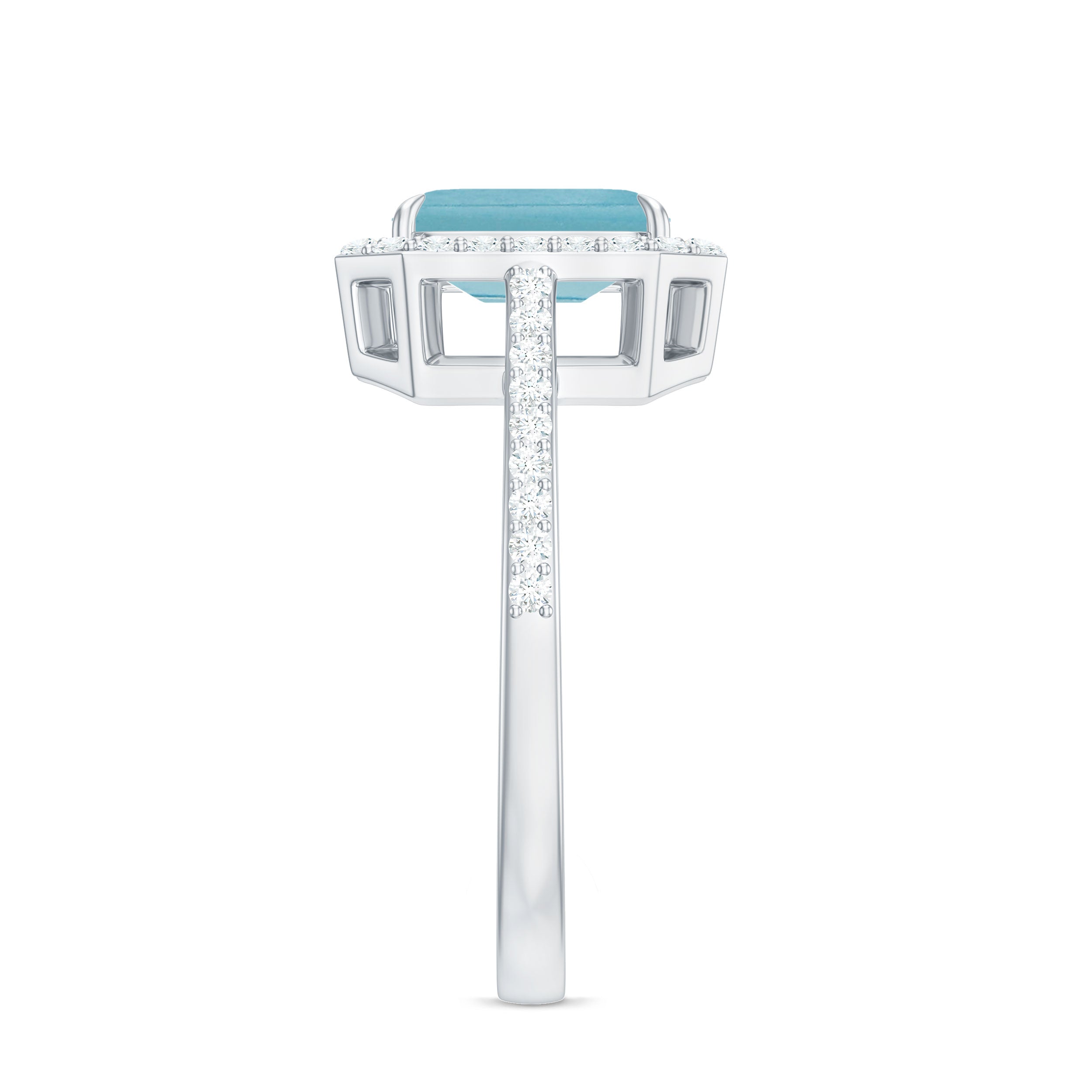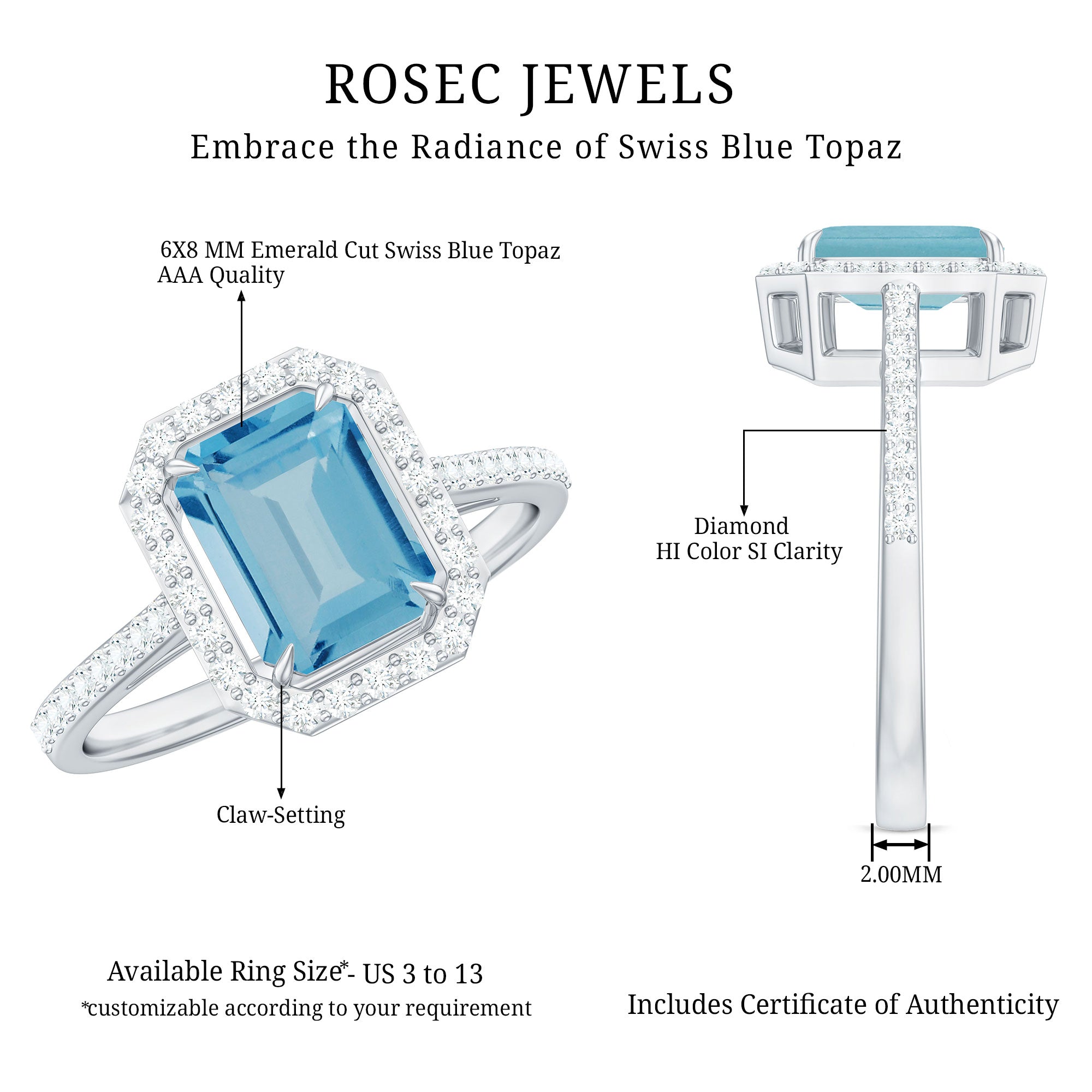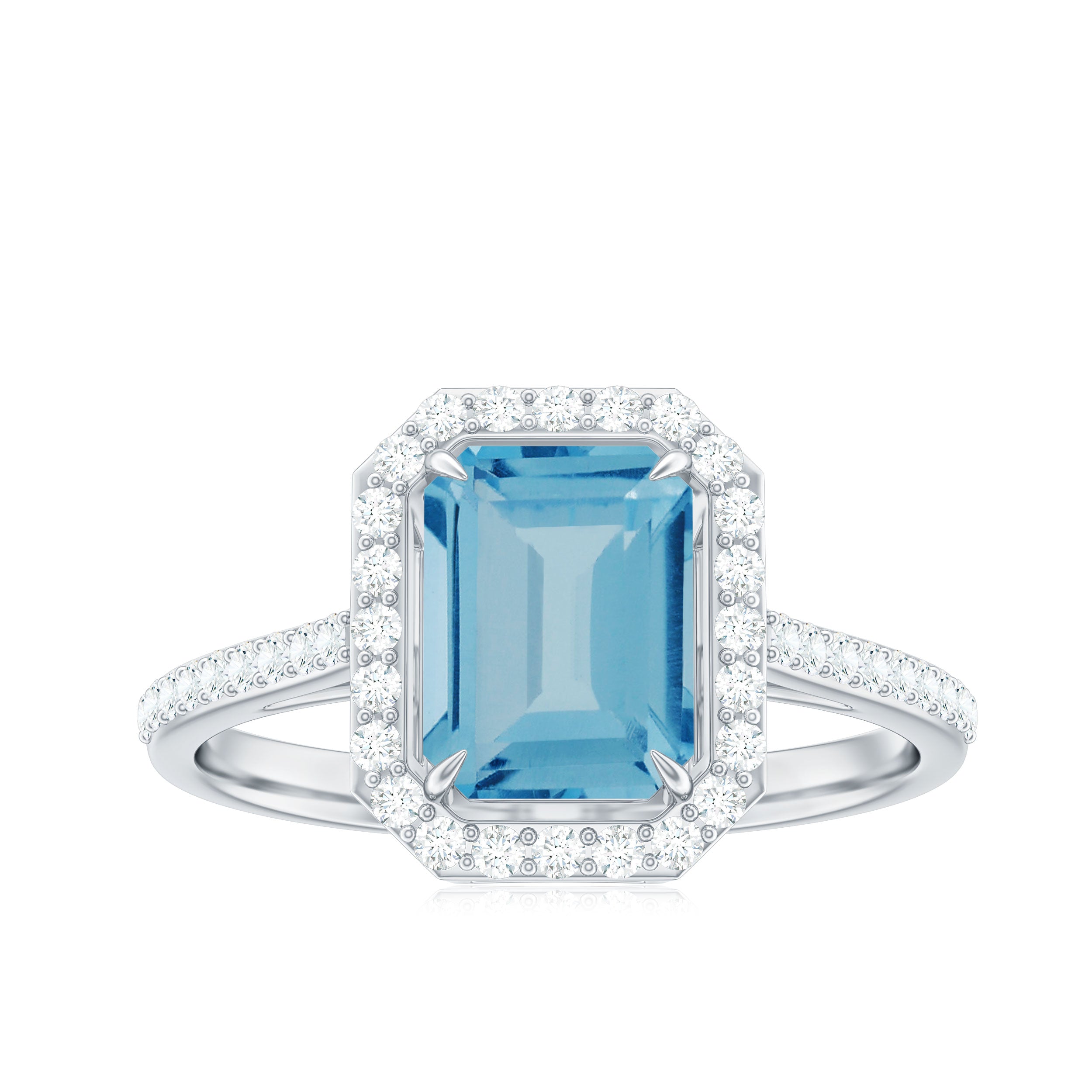 Swiss Blue Topaz Engagement Ring with Diamond Halo