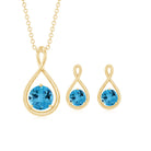 Swiss Blue Topaz Solitaire Pendant and Earring Set with Infinity Design