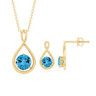 Dazzle in our Infinity Necklace Set featuring a 6 MM Round Cut Swiss Blue Topaz Solitaire in a unique Infinity style Pendant and 4 MM Solitaires in Infinity Earrings. The classic Solitaire Jewelry Set crafted in shining Gold will add grace and elegance to your look.