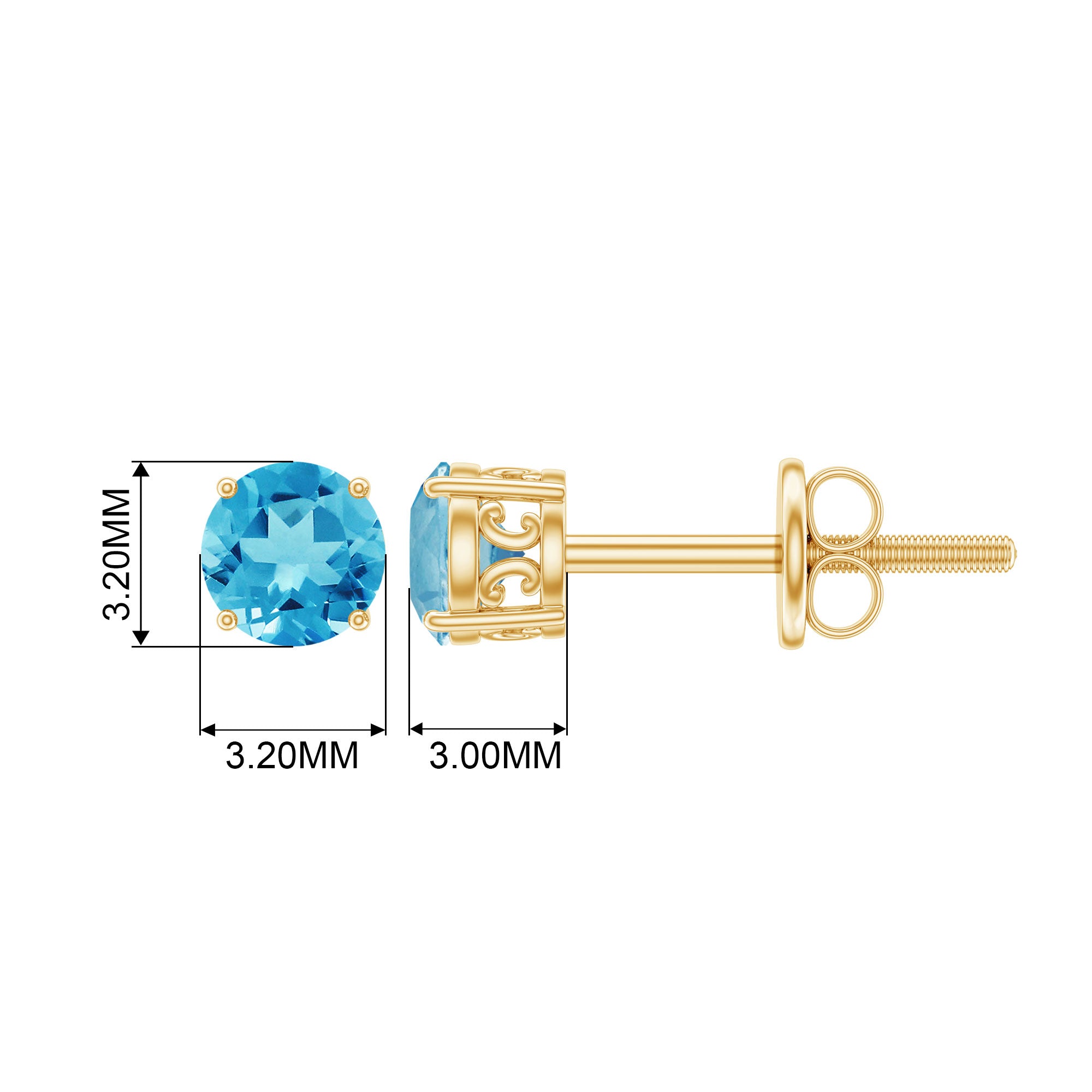 Swiss Blue Topaz Solitaire Stud Earrings in 4 Prong Setting