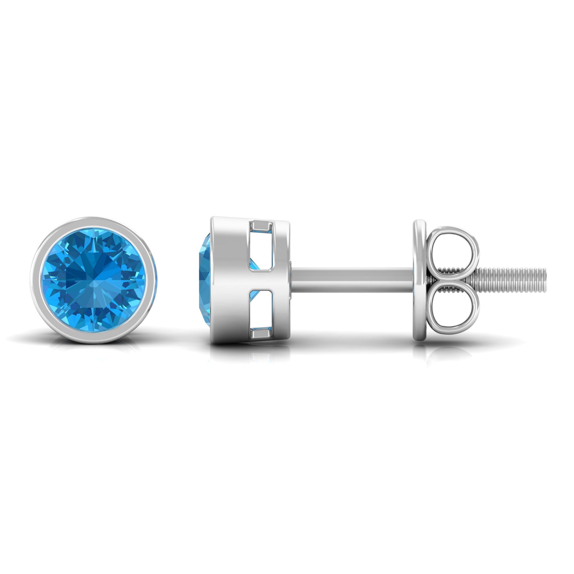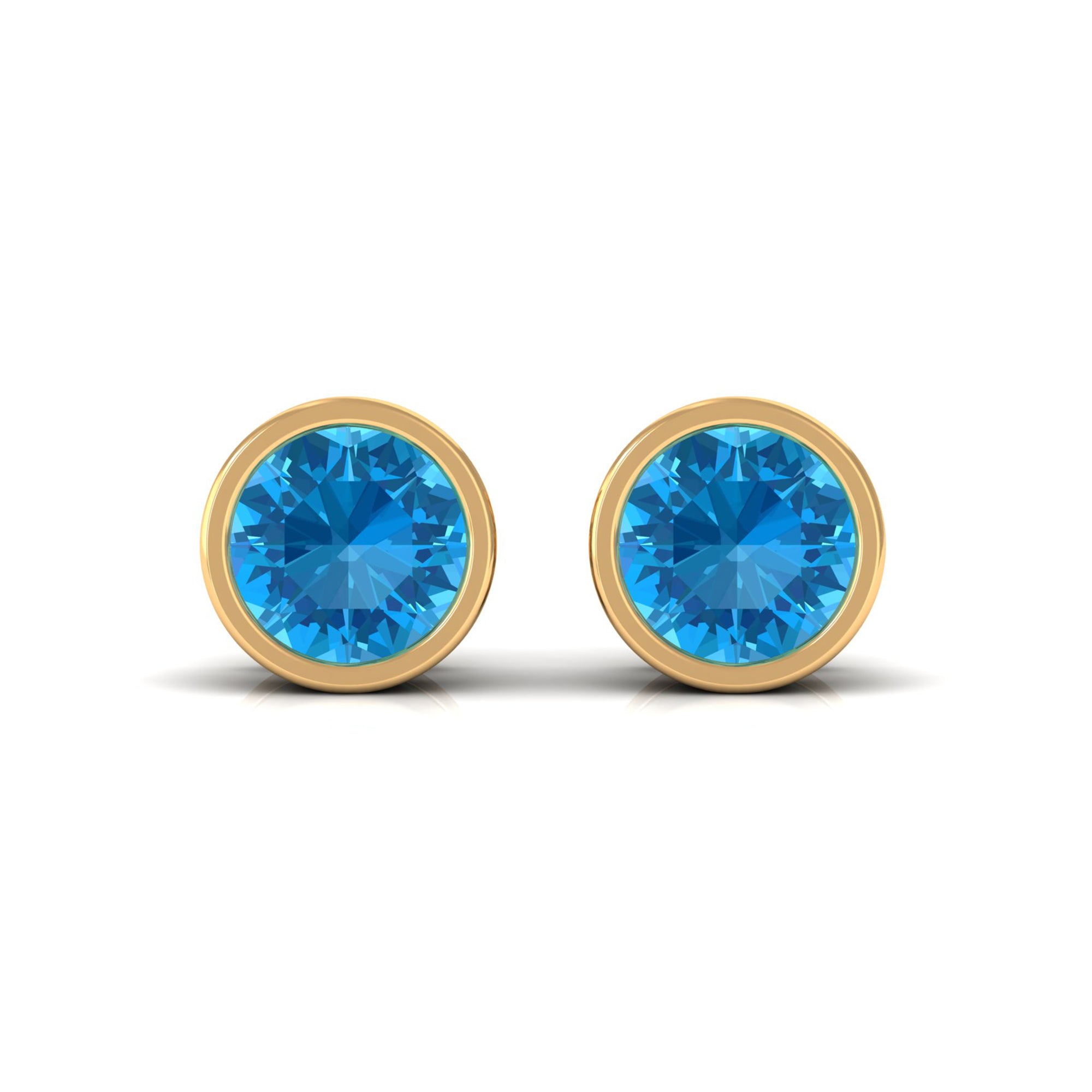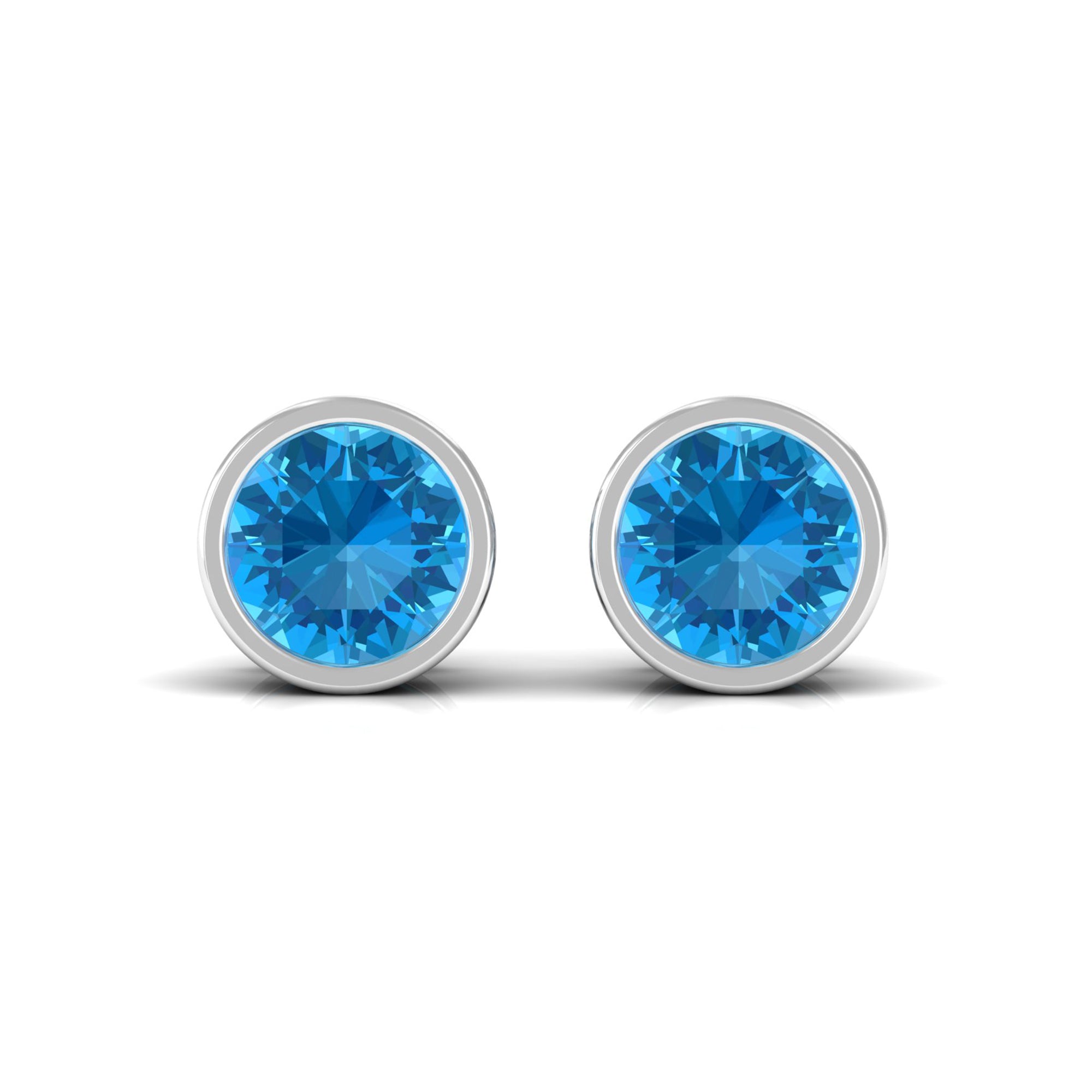 Swiss Blue Topaz Solitaire Stud Earrings in Bezel Setting