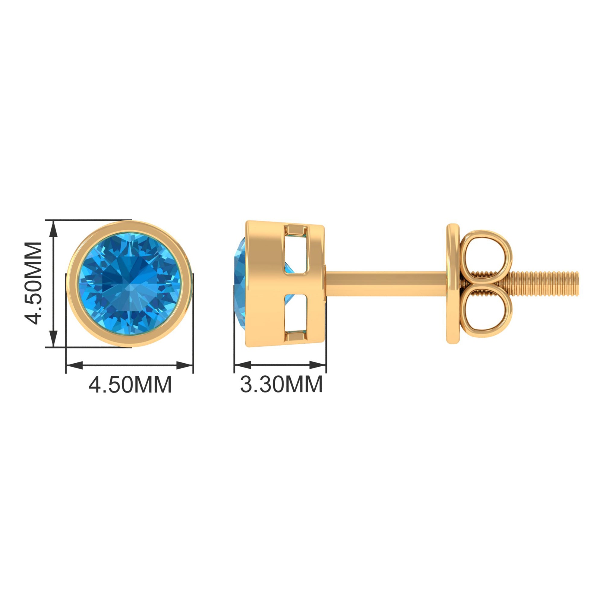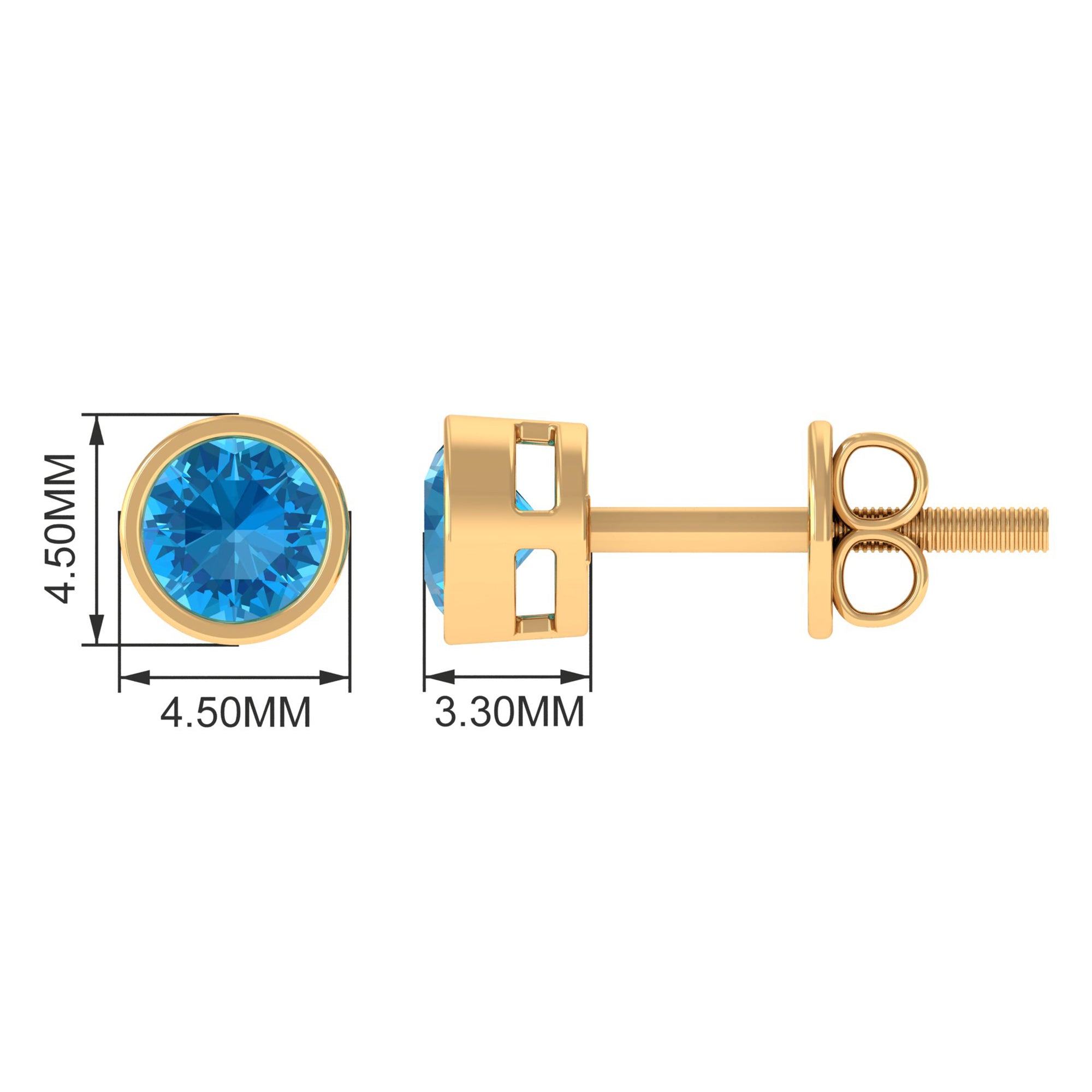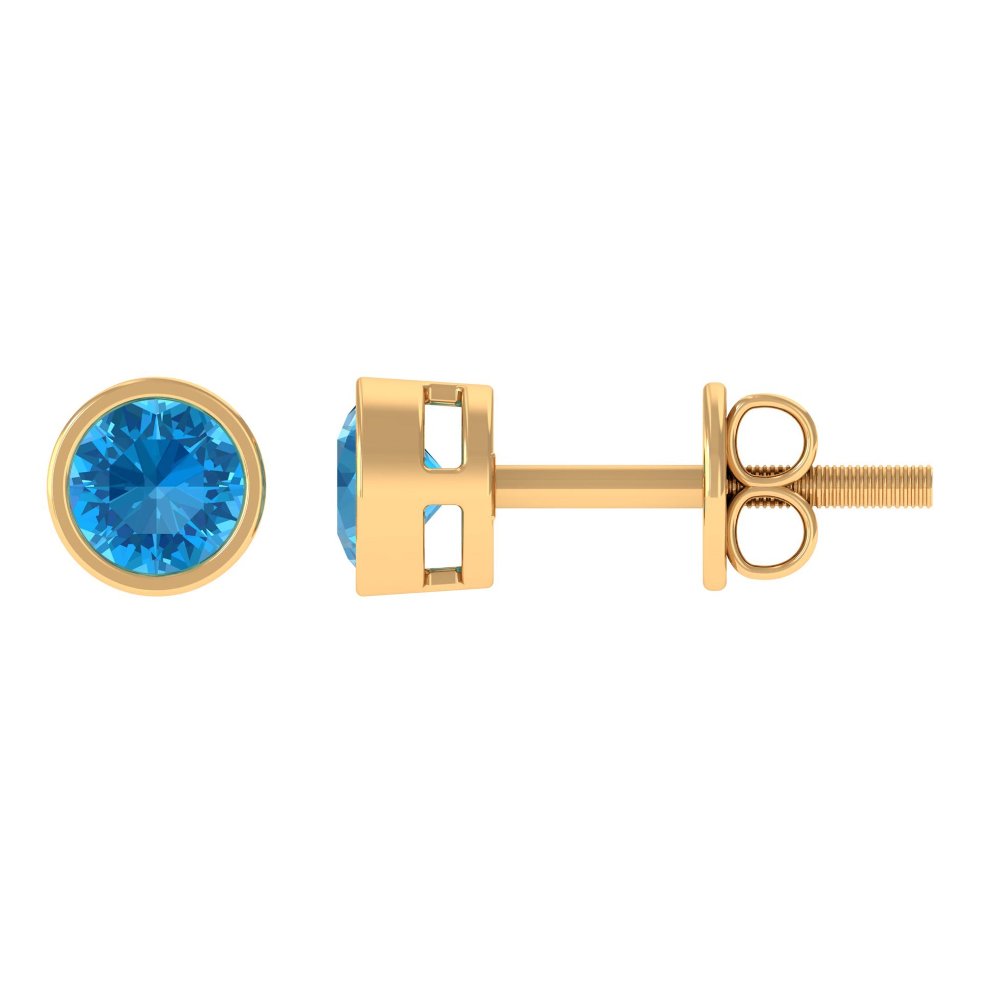 Swiss Blue Topaz Solitaire Stud Earrings in Bezel Setting