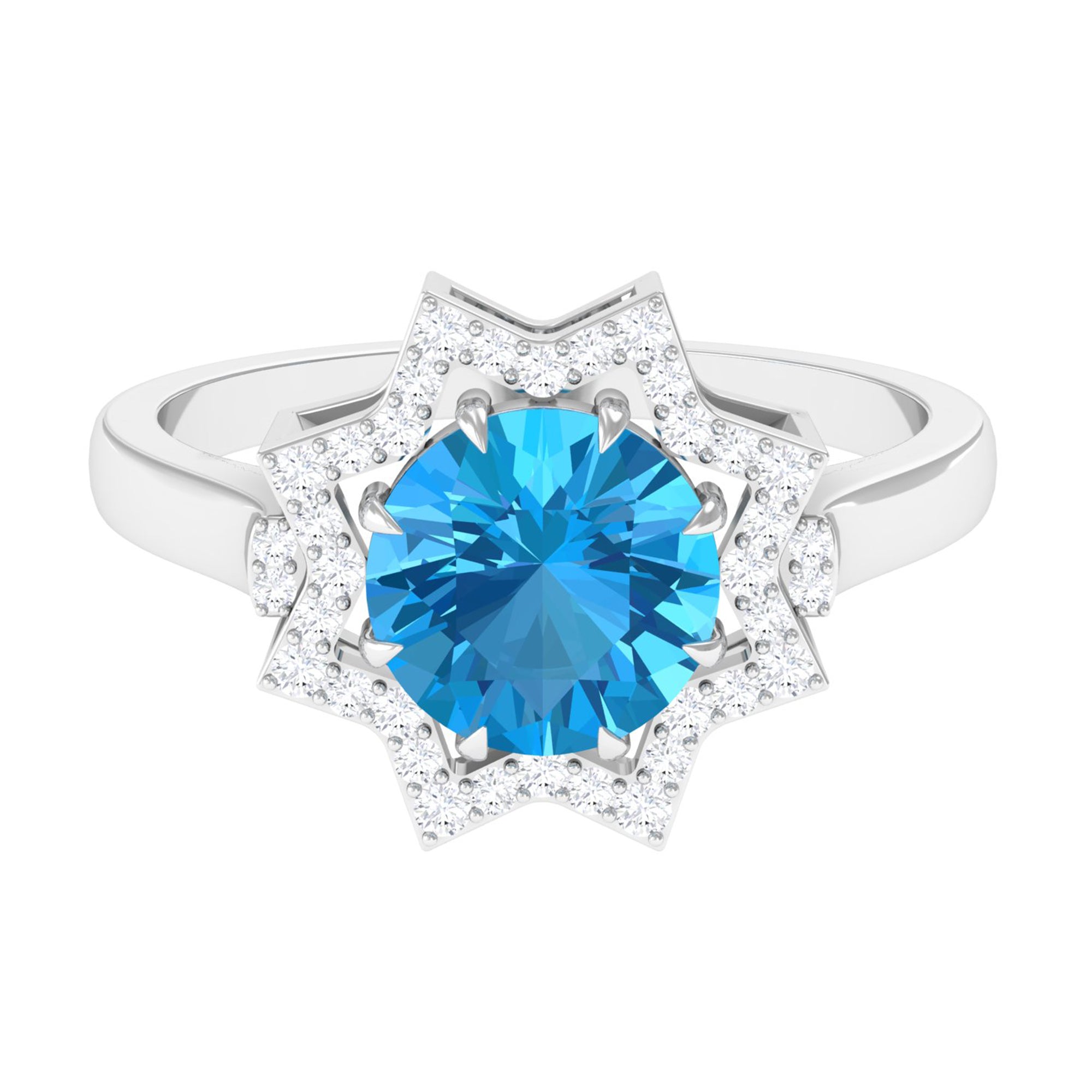 Swiss Blue Topaz Star Shape Engagement Ring with Diamond