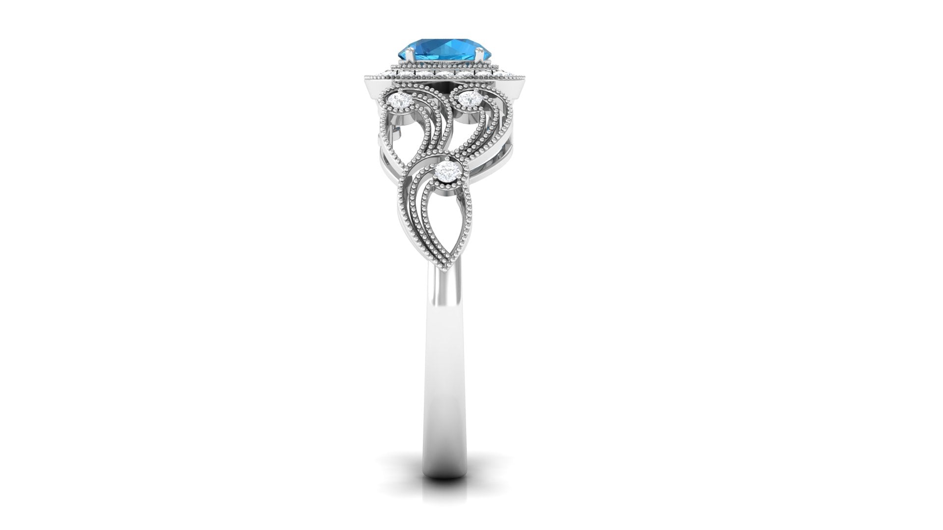 Swiss Blue Topaz Vintage Style Engagement Ring with Diamond