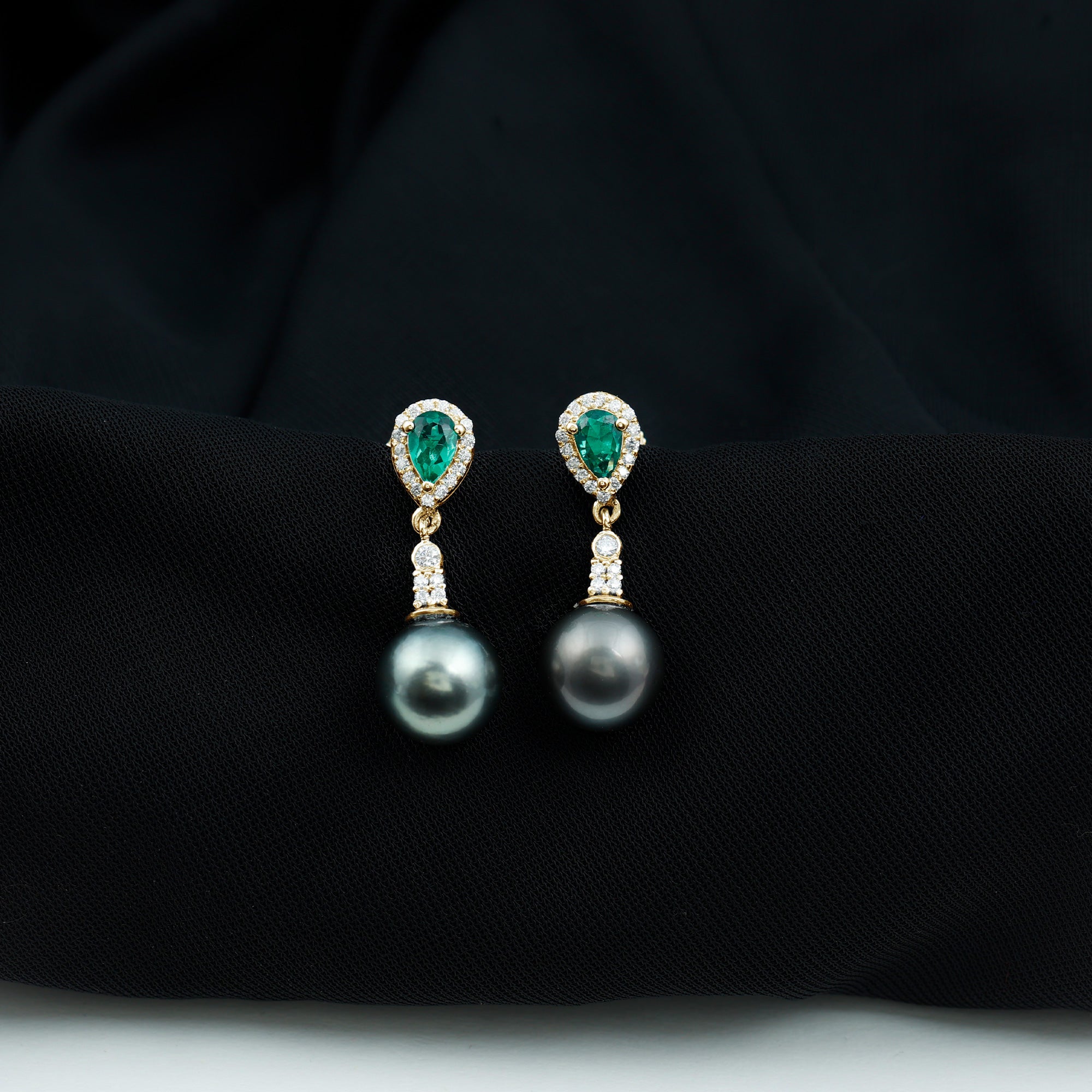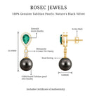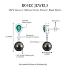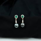Make your special day even more memorable with our exquisite Black Pearl Dangle Earrings, embellished with an 8 MM Tahitian Pearl, a 4X6 MM Pear Cut Lab Created Emerald, and Round Cut Moissanite stones. These luxurious Designer Drop Earrings are crafted in high quality metal to make for a stunning choice that exudes opulence and sophistication. Perfect for adding a touch of glamour to your bridal look, these Tahitian Pearl Earrings are sure to turn heads and make a statement. Secure screw back closures give peace of mind, keeping the Pearl and Emerald Drop Earrings comfortably in place throughout the day. The timeless design makes them easy to wear without any discomfort, while the carefully crafted setting highlights the beauty of each stone. Handcrafted by skilled artisans, these Wedding Earrings for Bride combine timeless design with modern elegance. Delivered in a beautiful jewelry box, they are ready to become a cherished accessory for your special day.