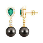 Genuine Black Pearl and Emerald Vintage Drop Earrings