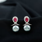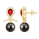 Tahitian Pearl and Created Ruby Drop Earrings with Moissanite