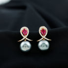 Add a touch of luxury to your wardrobe with these stunning Drop Earrings. Crafted in Gold, these earrings feature a Pear Cut Lab Created Ruby in Prong Setting, complemented by shimmering Round Cut Moissanite. A captivating Tahitian Pearl completes the design, creating a sophisticated and elegant look. These Vintage Earrings make a thoughtful anniversary gift for your significant other, or a special treat for yourself.