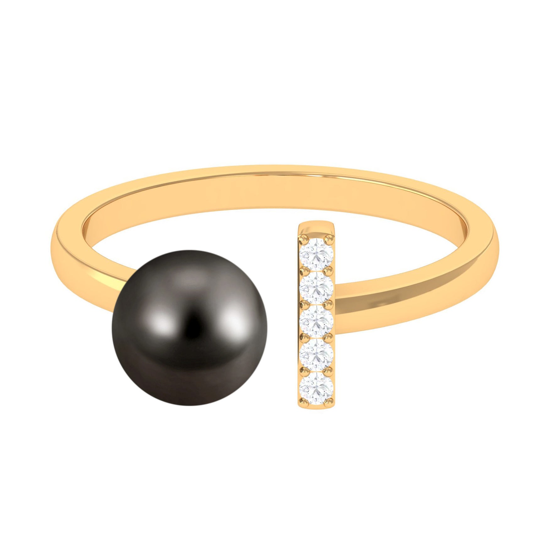 Modern Cuff Engagement Ring is featuring Tahitian Pearl in bead setting and Round Petite Diamond to enhance the look of this tahitian ring. This Gold Cuff Ring is very sober and minimal, it adds a touch of glamour in your look too. Get this beautiful Black Pearl Cuff Ring and flaunt its beauty.