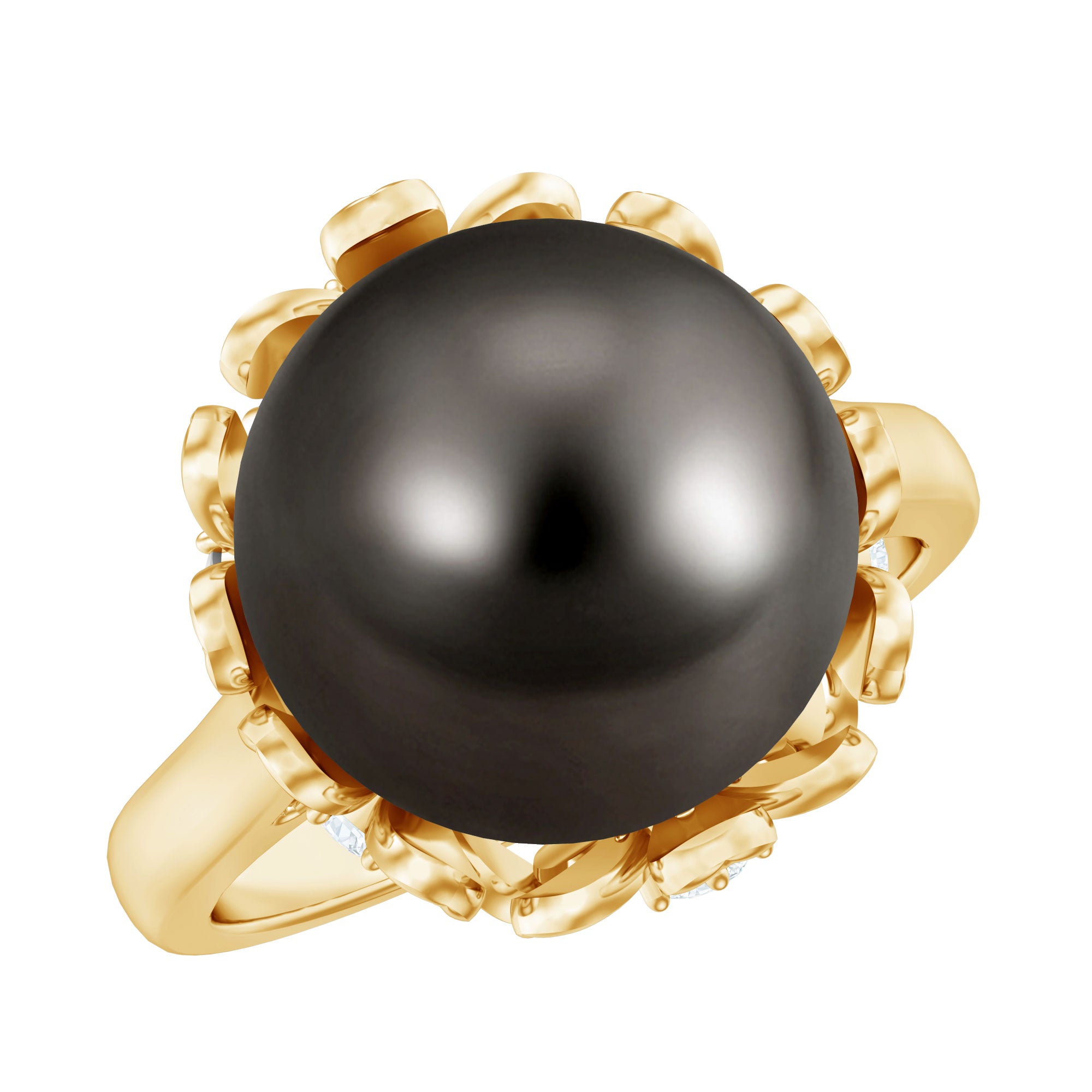 This stunning Solitaire Ring showcases a mesmerizing Round Shape Tahitian Pearl, flanked by sparkling Diamonds, set in an intricate Floral Setting. This exquisite ring is the perfect symbol of your love and commitment, making it an ideal choice for an Engagement Ring to present to your beloved.
