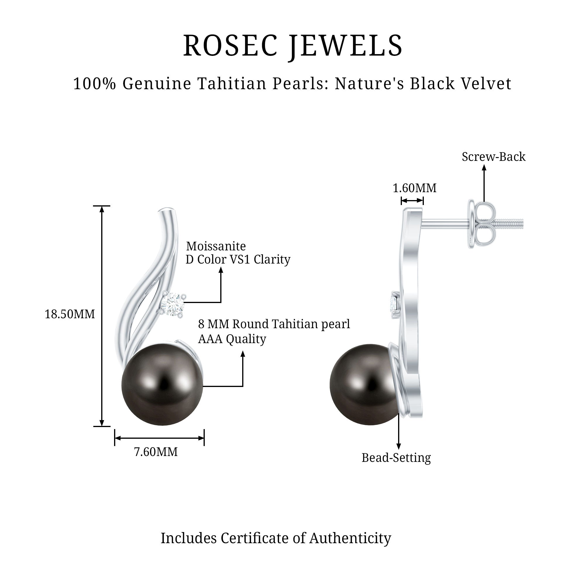 Tahitian Pearls are highly valued because of their rarity. This Gorgeous Pair has a Unique design with a Black Tahitian Pearl Drop and a Moissanite gemstone. Their beautiful black color is embraced by ladies worldwide, making it a perfect pair to bring out the uniqueness in your loved ones.