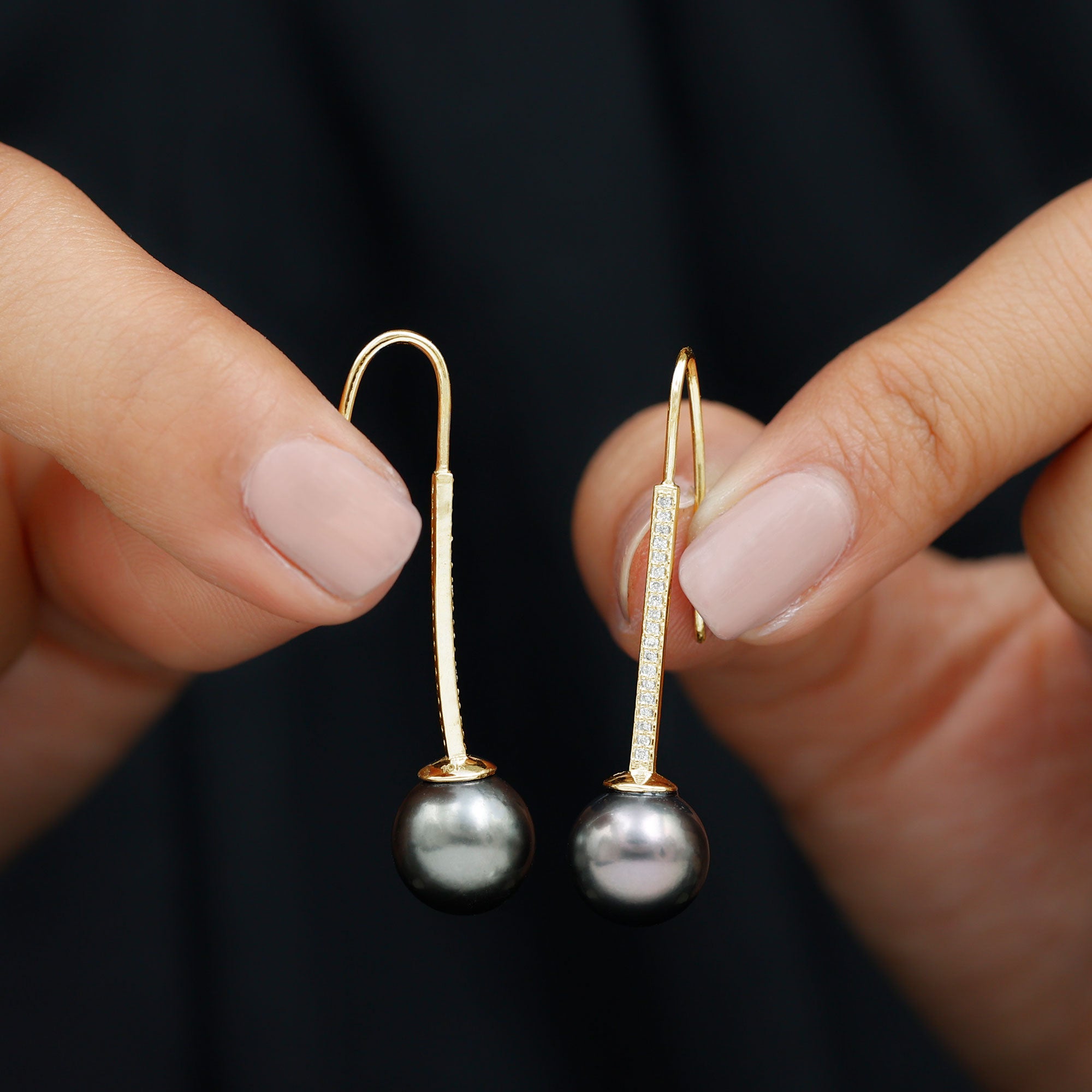 Add a touch of elegance to your formal and party attire with these stunning Dangle Earrings. Featuring a bar design with Round Cut moissanite stones set in prongs, and a gorgeous Tahitian Pearl drop, these Dangle Drop Earrings are a perfect addition to your jewelry collection. Crafted in Gold, these Tahitian Pearl Earrings will add a touch of class and sophistication to your look. Give this mesmerizing pair of Black Pearl Earrings to your best friend as a wedding present, and let her shine bright on her special day.