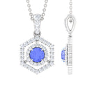 Tanzanite and Diamond Hexagon Pendant Necklace