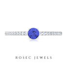 Want to make her day really special and give her something she can keep close to her heart forever then give her this mesmerizing Solitaire Ring showcasing a dainty Round Shape Tanzanite set in peg head setting while pave set Round Shape Diamonds enhances its shank.