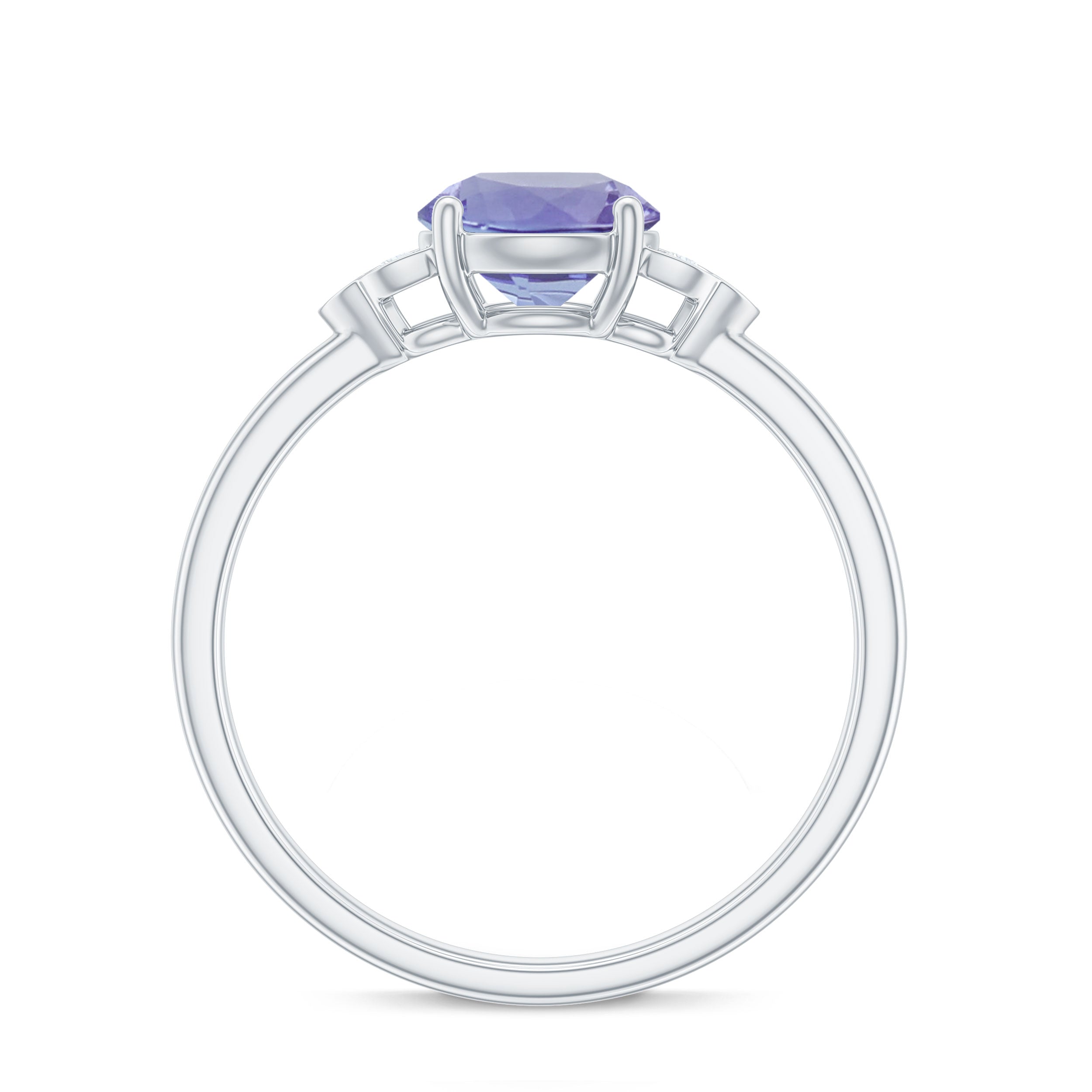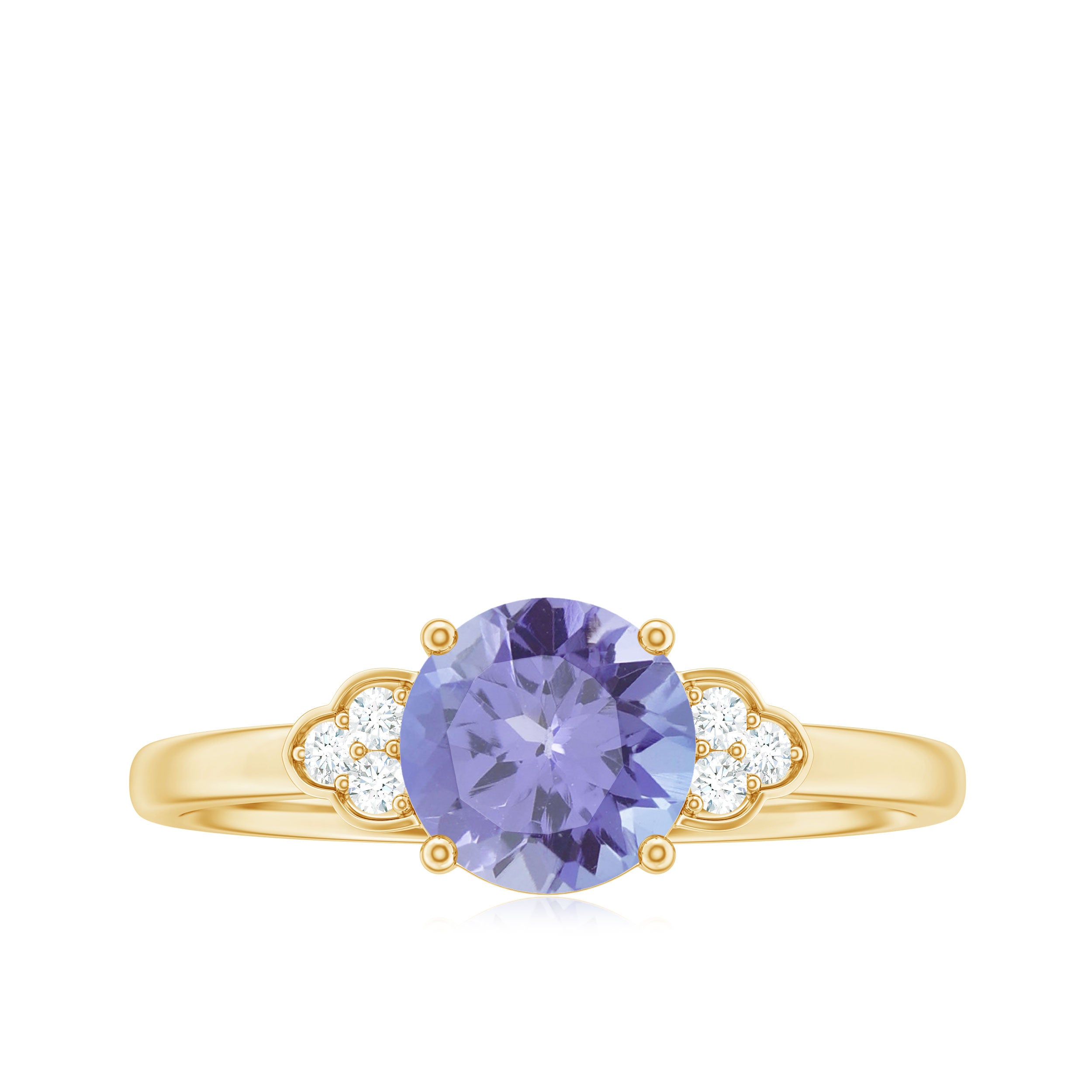 Beautifully designed for your loved one, this Engagement ring is adorned with Round Shape Tanzanite in Prong setting and Diamond Trio accent. Gift this charming ring to your partner on the special occasion.