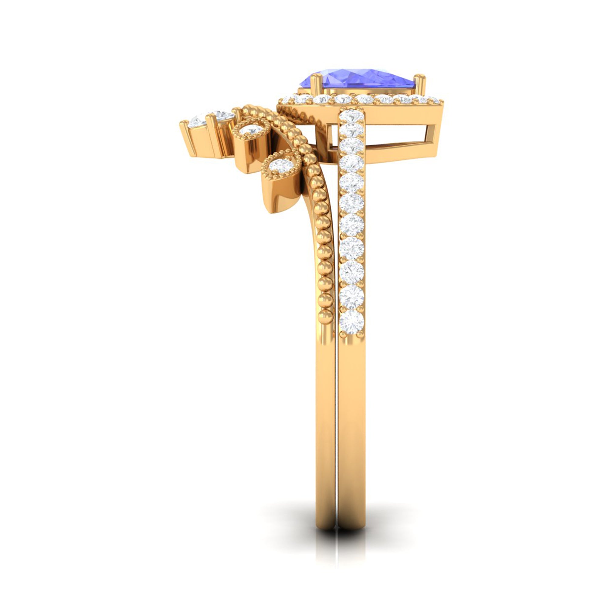 Tanzanite Vintage Teardrop Wedding Ring Set with Diamond